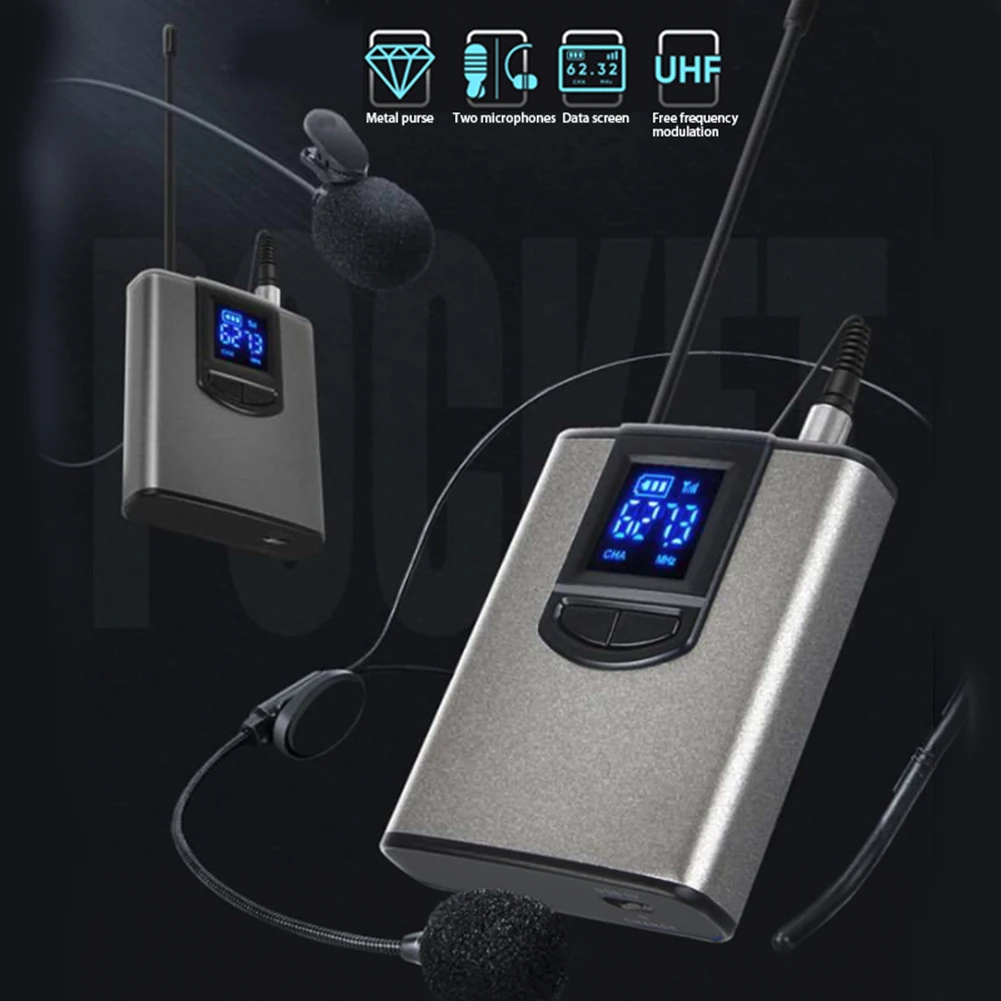 Портативный отворот/гарнитура Mic UHF Беспроводной приучите микрофон приемник передатчик