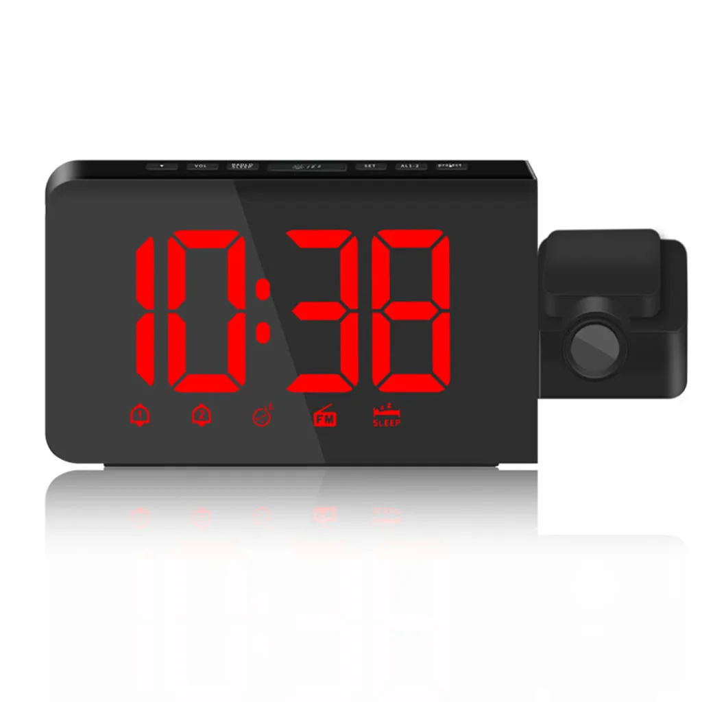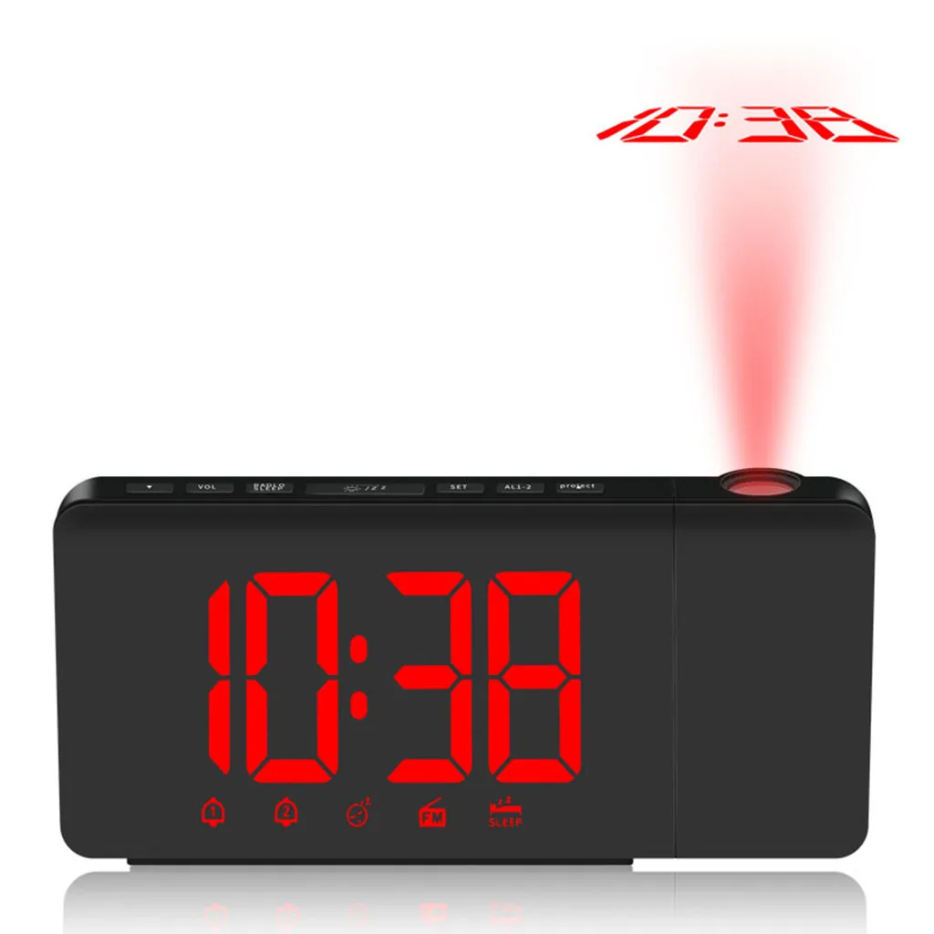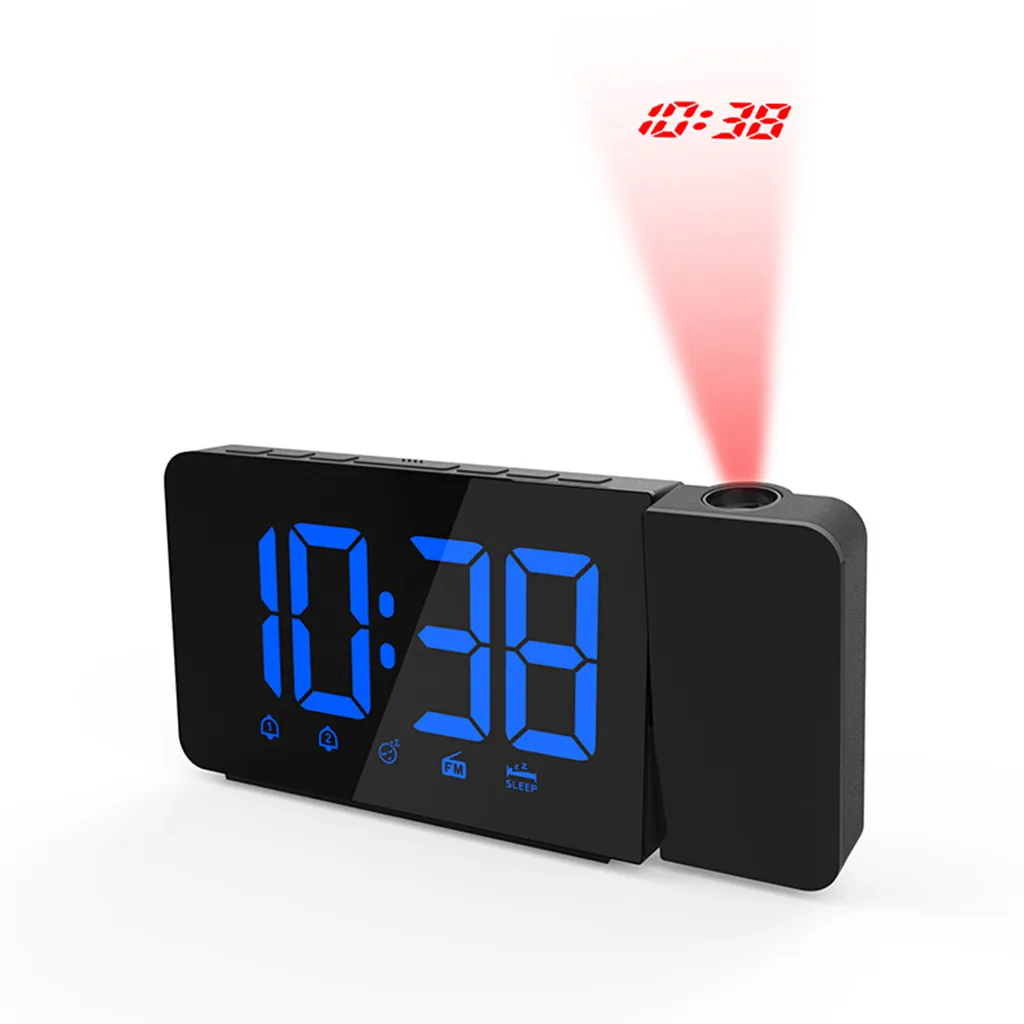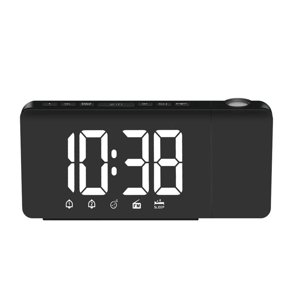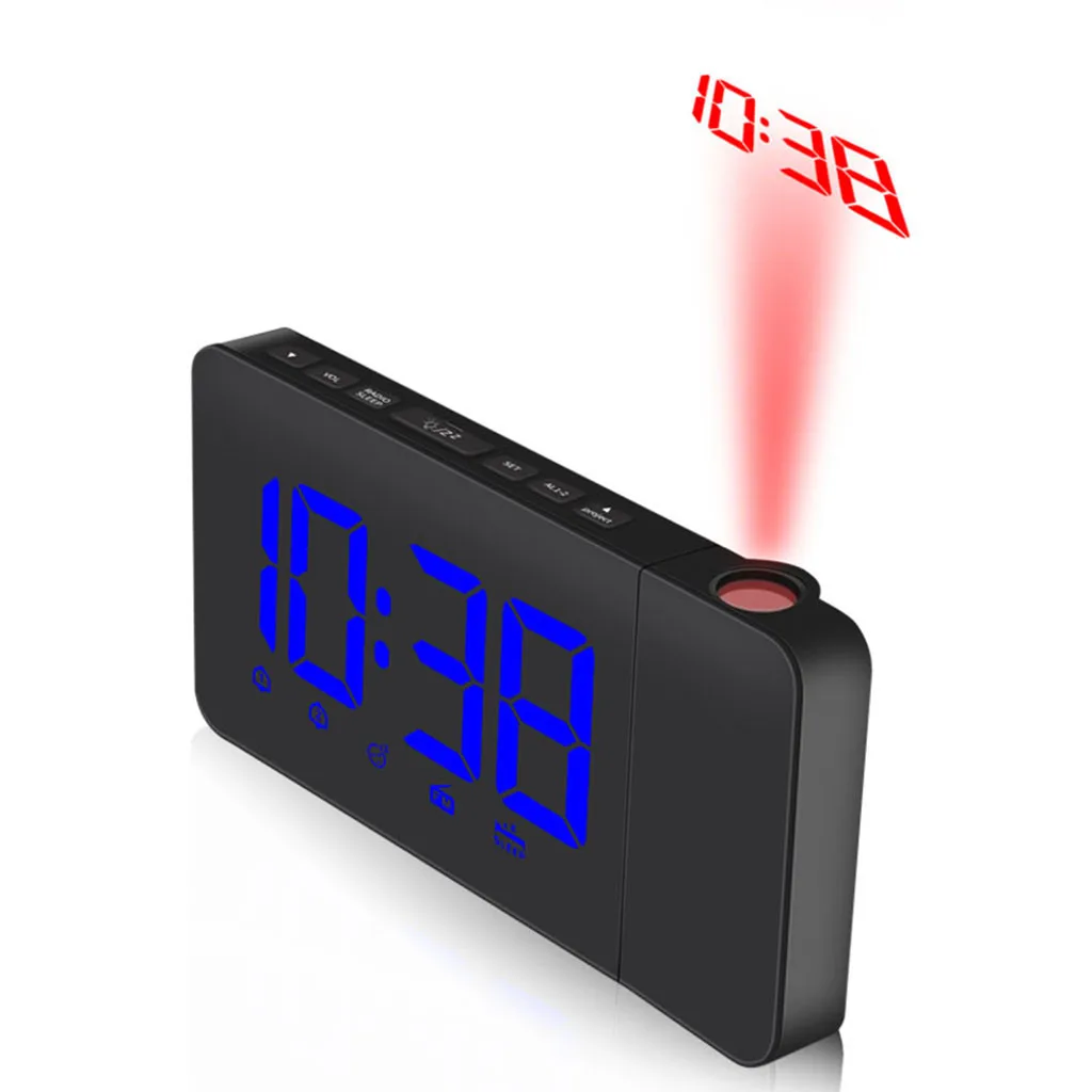 USB Проекционные Часы светодиодный цифровые часы-будильник вращающийся двойным сигналом показывающие внутреннюю/FM радио