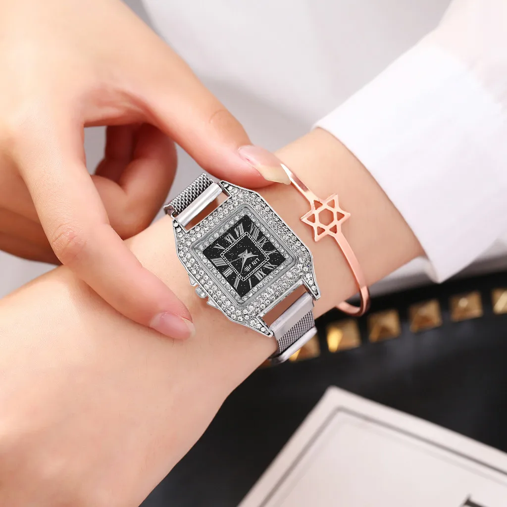 Роскошные женские часы с кристаллами, женские кварцевые часы из нержавеющей стали с магнитной пряжкой, полностью бриллиантовые часы, женские часы reloj mujer, Прямая поставка