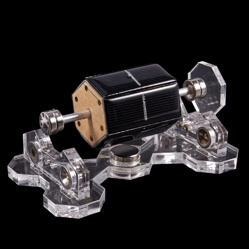 Это настоящая Солнечная Магнитная левитационная Модель двигателя, чистая ручная работа, состоит из 6 Солнечный кремний вафли, медные катушки, вал, магнит NdFeB, акриловый стент.