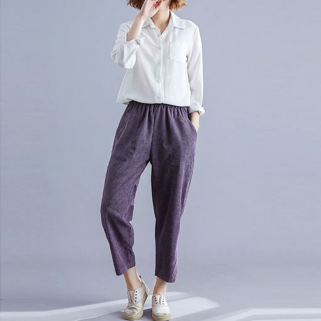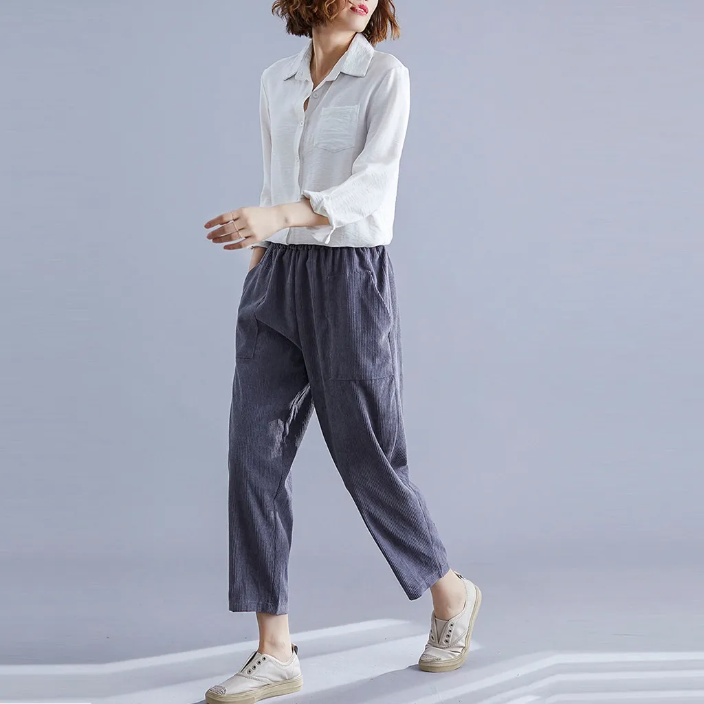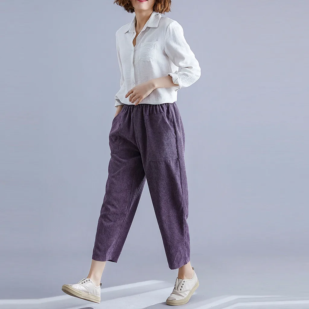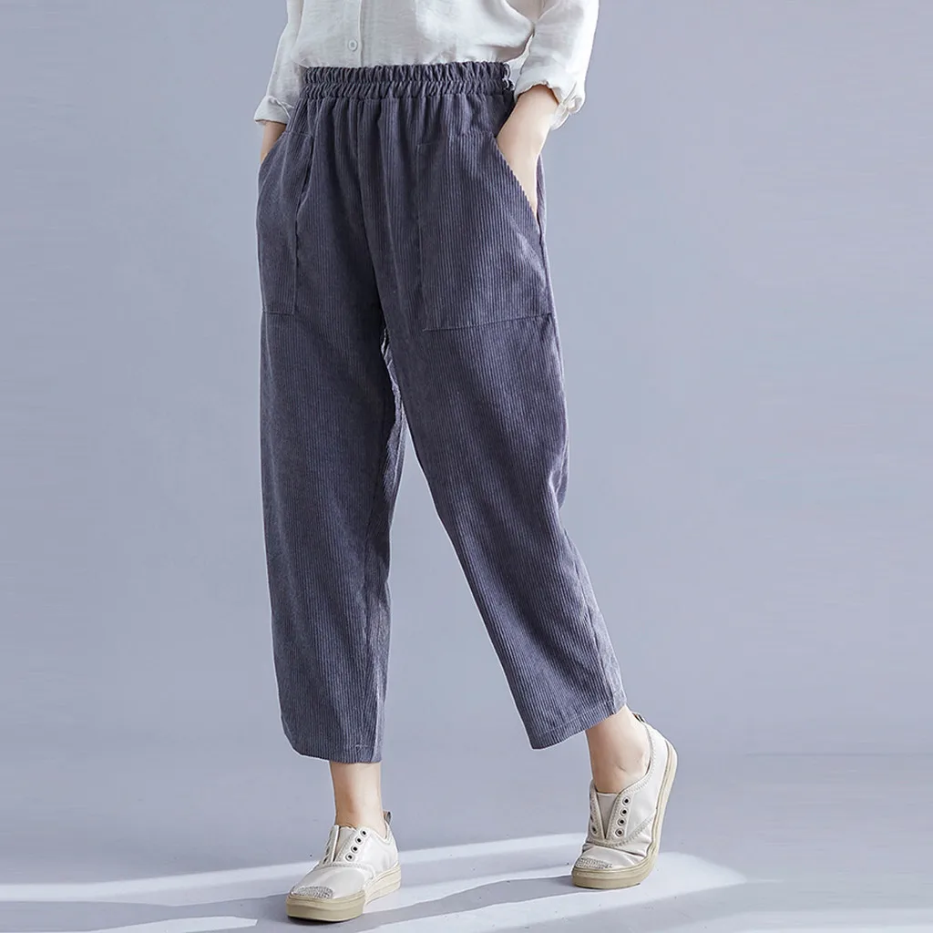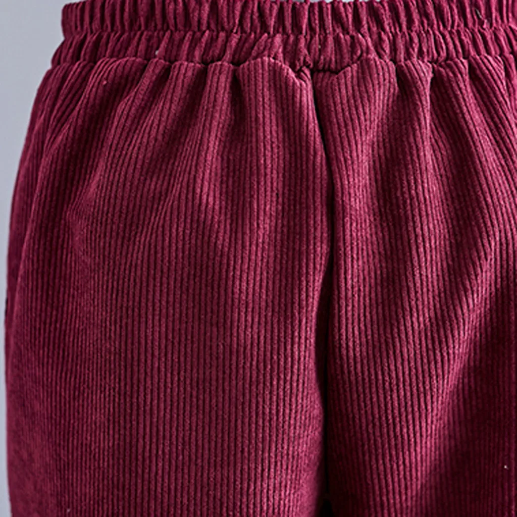 Женские вельветовые укороченные брюки с эластичным поясом, повседневные брюки с карманами, брюки-слаксы, Осень-зима 2020