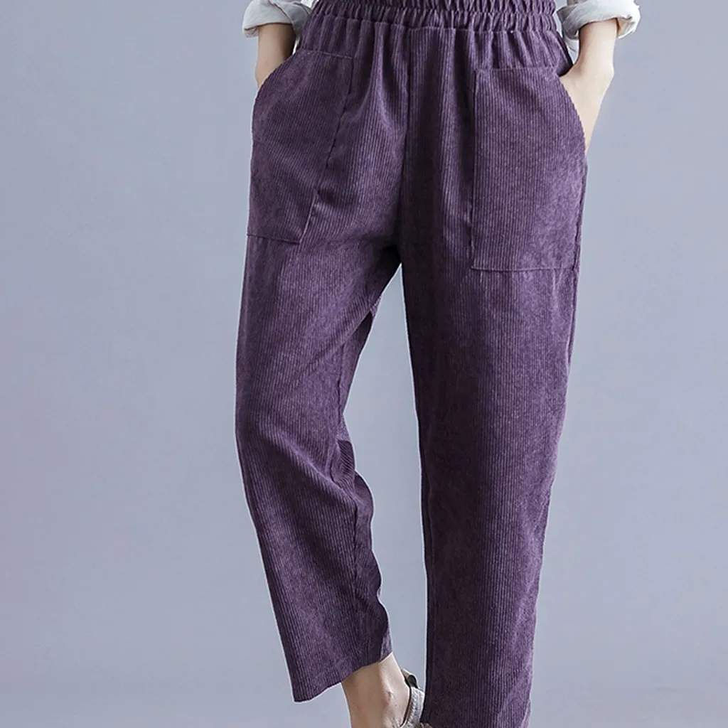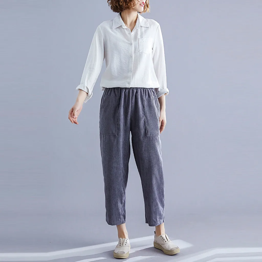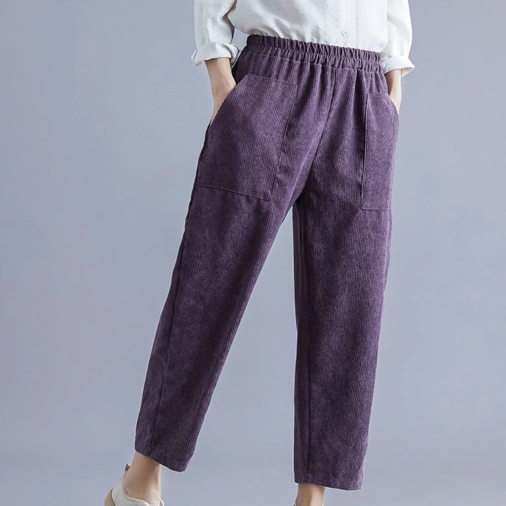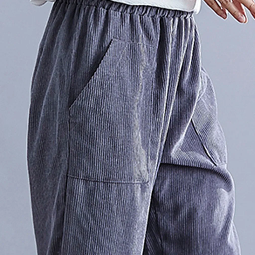 Женские вельветовые укороченные брюки с эластичным поясом, повседневные брюки с карманами, брюки-слаксы, Осень-зима 2020