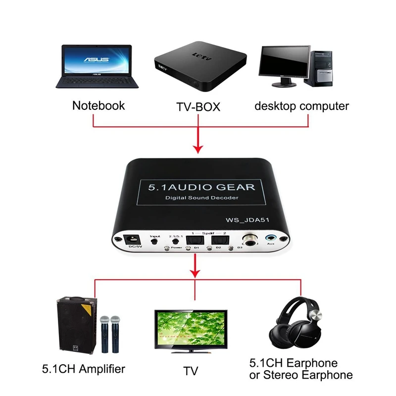 Подключи и работай. Работает с различными усилителями и динамиками для получения различных звуковых эффектов. Отлично подходит для многих домашних развлекательных устройств с оптическим или коаксиальным цифровым выходом, таких как HD TV, Apple TV, телеприставки, DVD/Blu-ray плееры, PS2, PS3, XBOX 360 и многое другое.