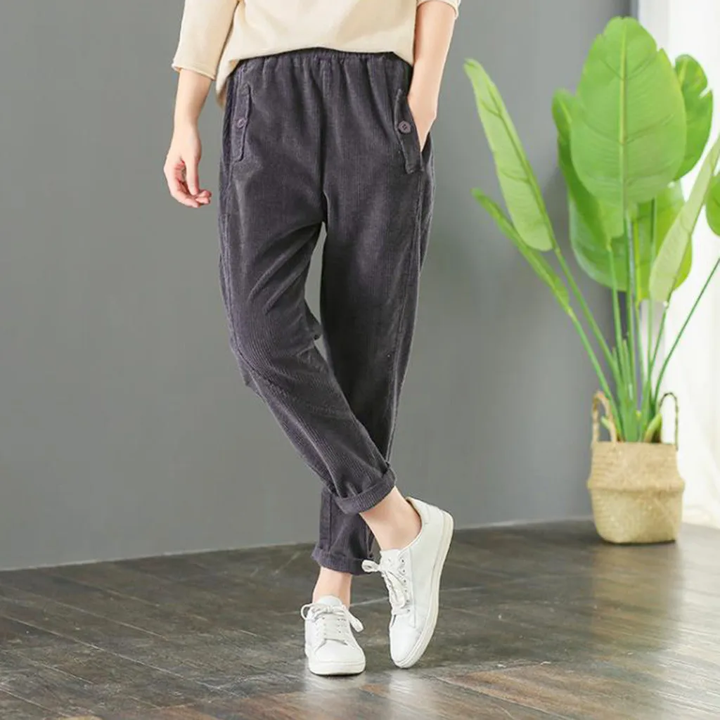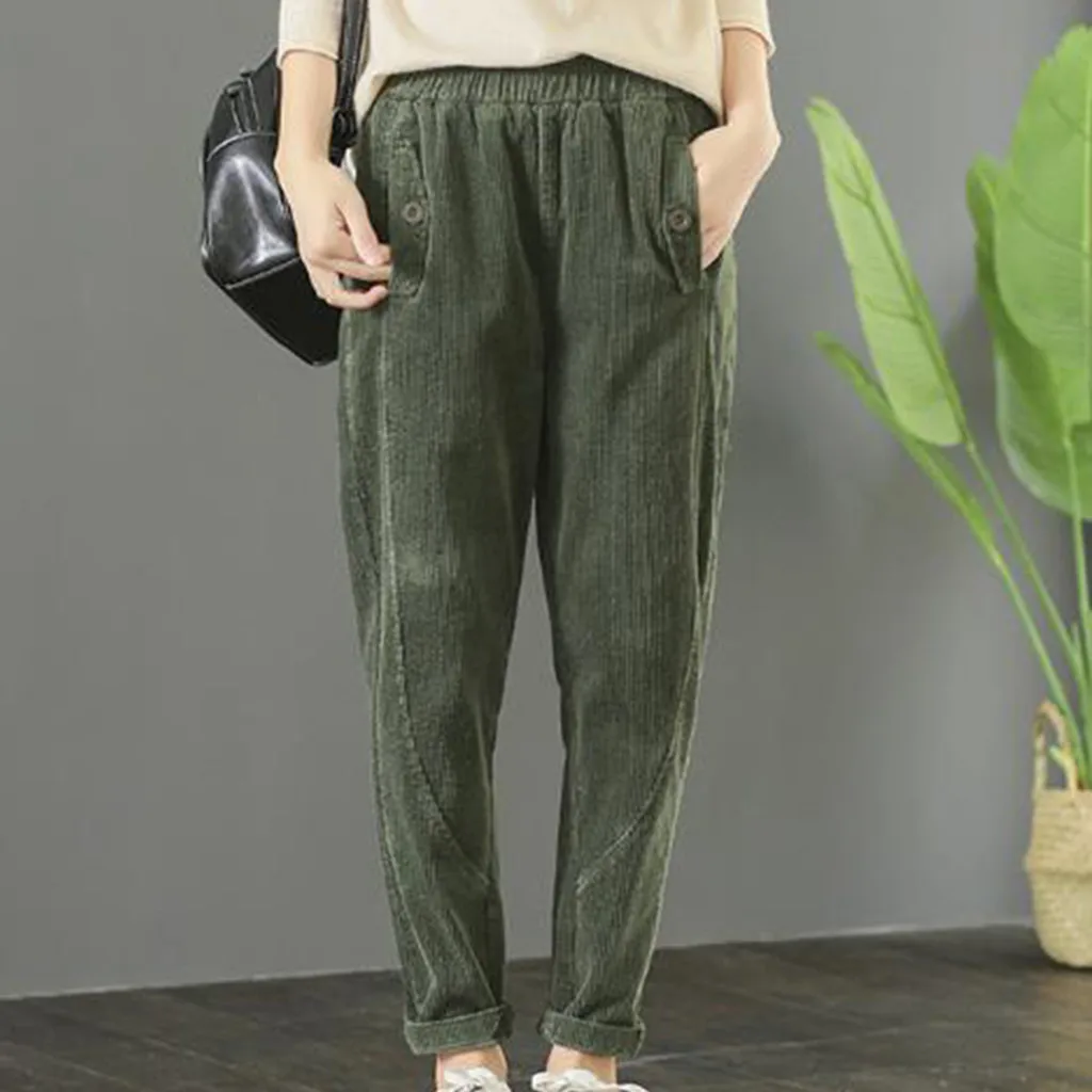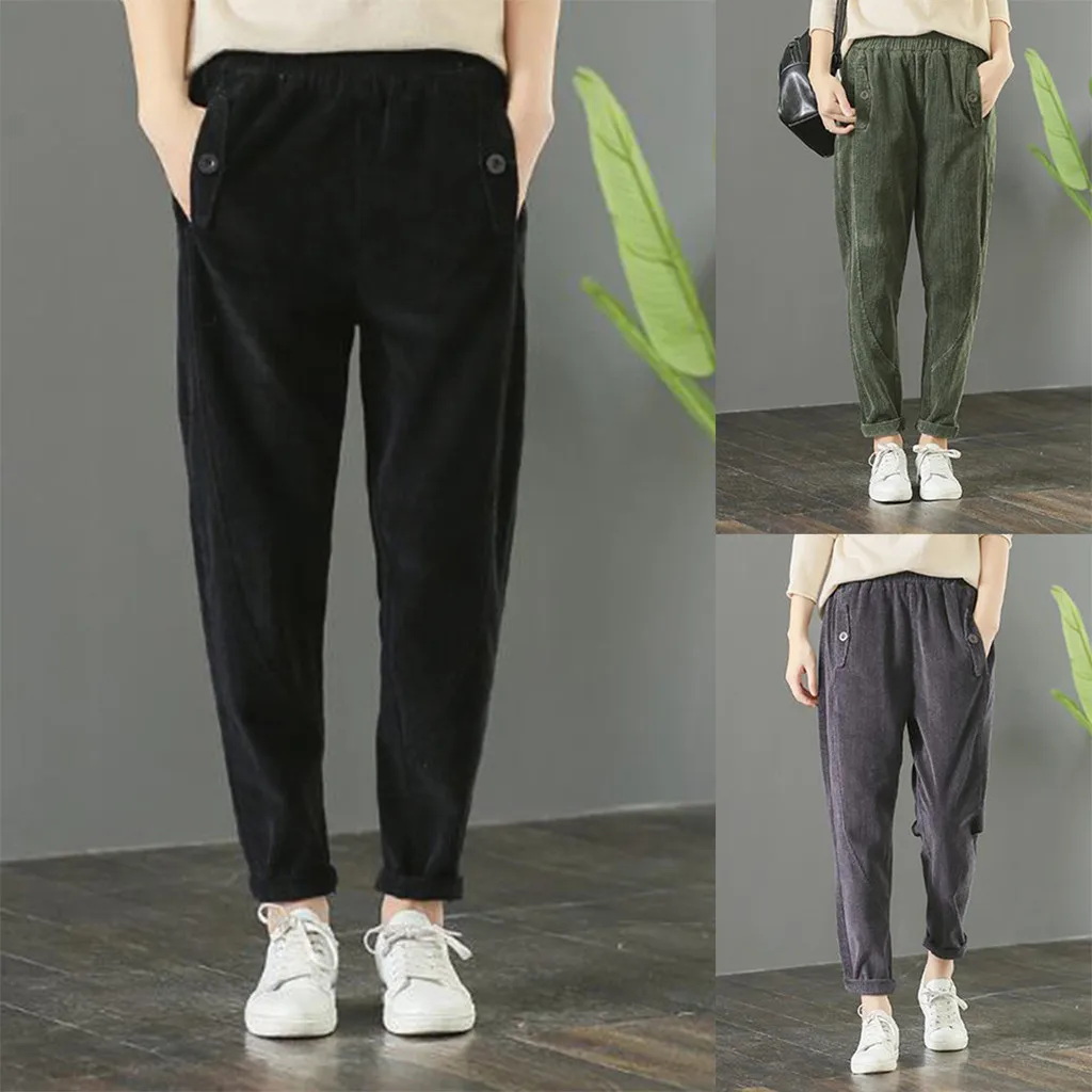 Весна-лето 2020 новые вельветовые брюки для женщин Повседневные Удобные брюки с эластичной резинкой на талии хлопковые брюки