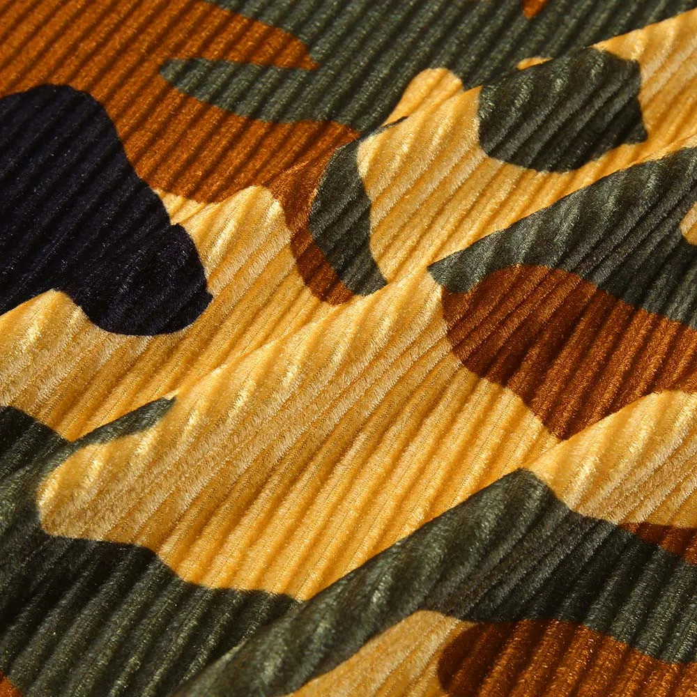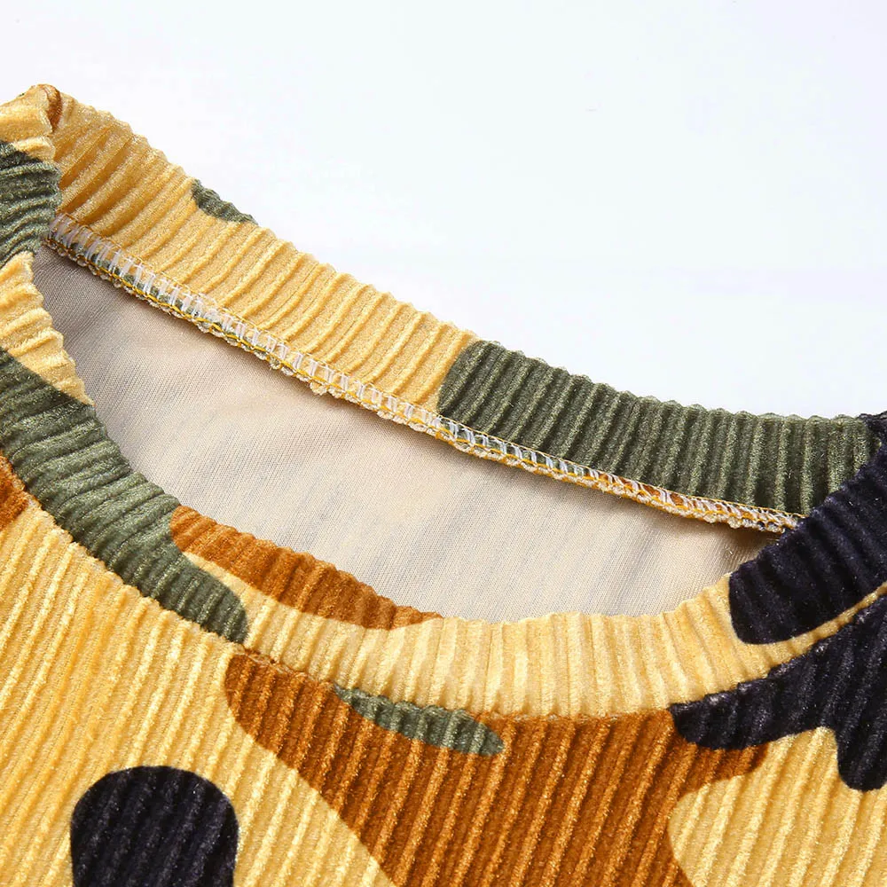 Женская осенняя и зимняя Вельветовая блузка, топы 2020, модная повседневная Свободная блузка с камуфляжным принтом и расклешенными рукавами