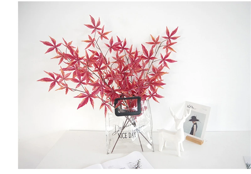 Характеристика: Наименование: имитация Красного кленового листа Материал: шелк Цвет: красный, темно-красный, зеленый, оранжевый. Размер: 5 веток: Общая длина: 93 см/36,6 дюйма. 3 разветвления:Общая длина: 80 см/31,5 дюйма.