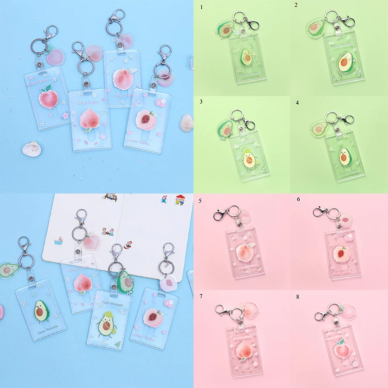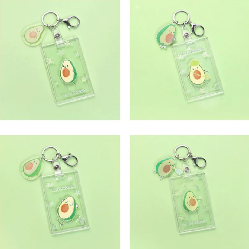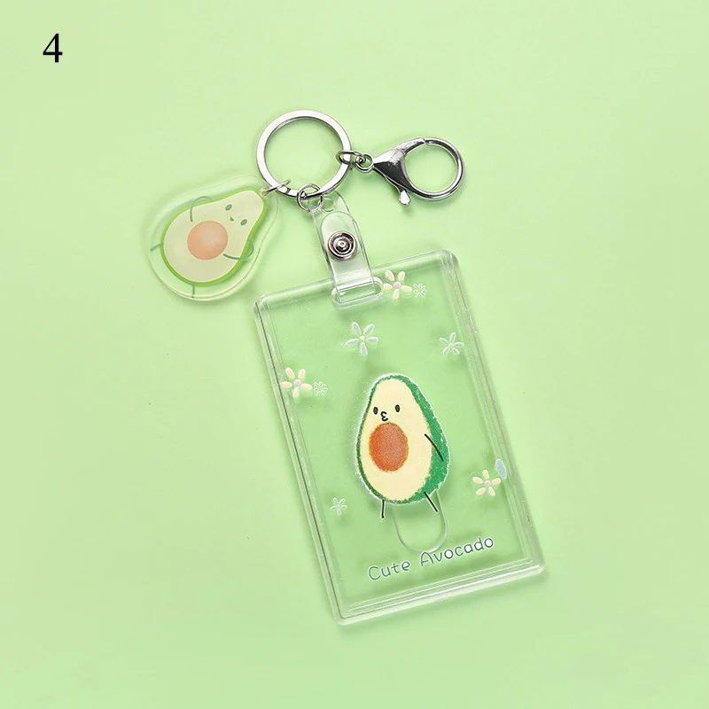 Милый авокадо прозрачный держатель для карты студент мультфильм брелок защита карты
