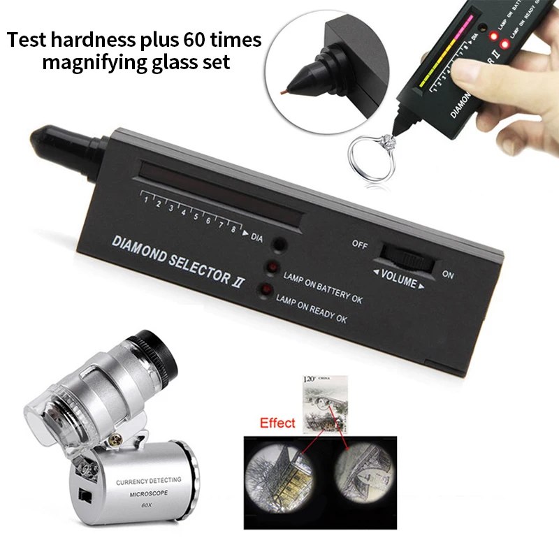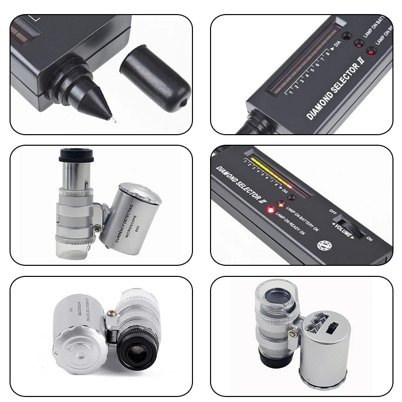 -- Компактный и портативный: Алмазный тестер-ручка и лупа 60X каждый поставляется с удобной сумкой для переноски. Легкий и компактный дизайн и может поместиться в любой кошелек или рюкзак.