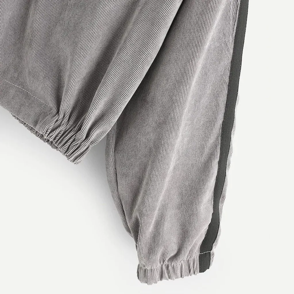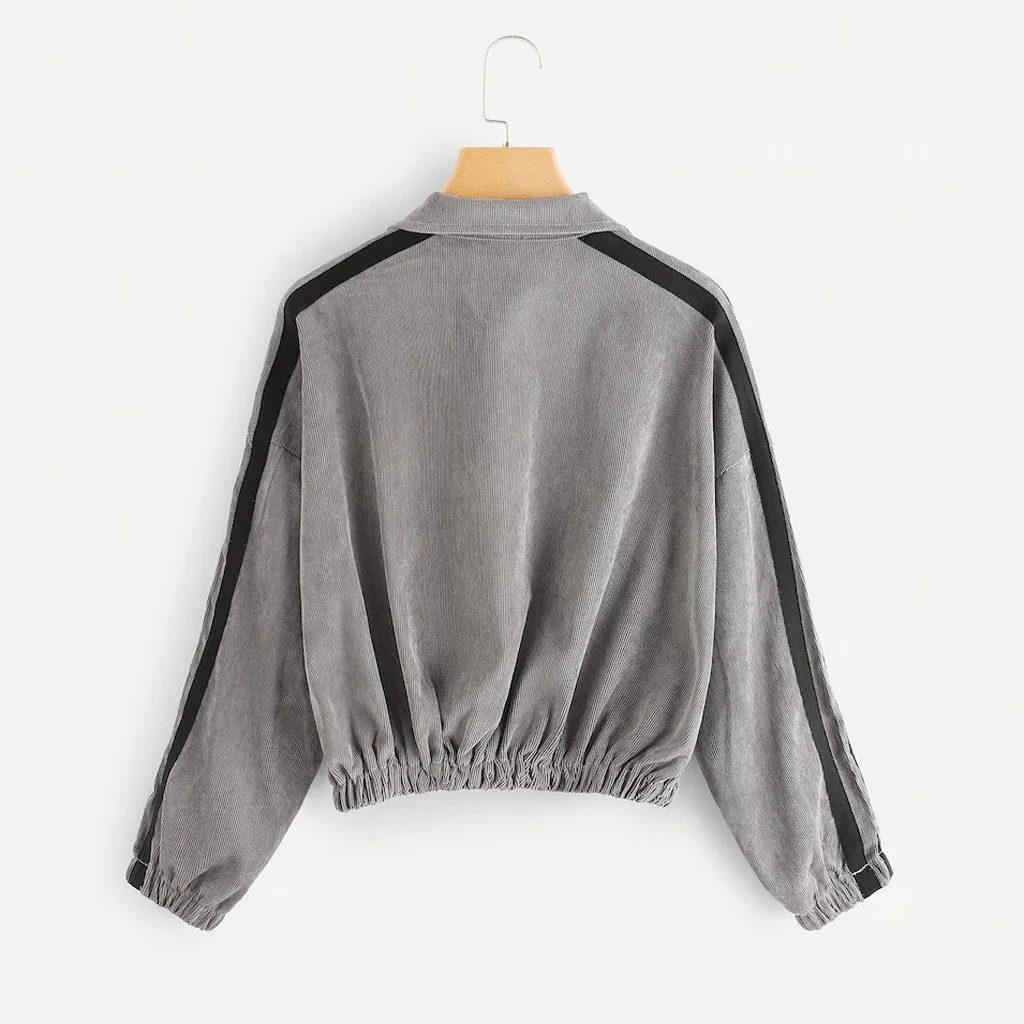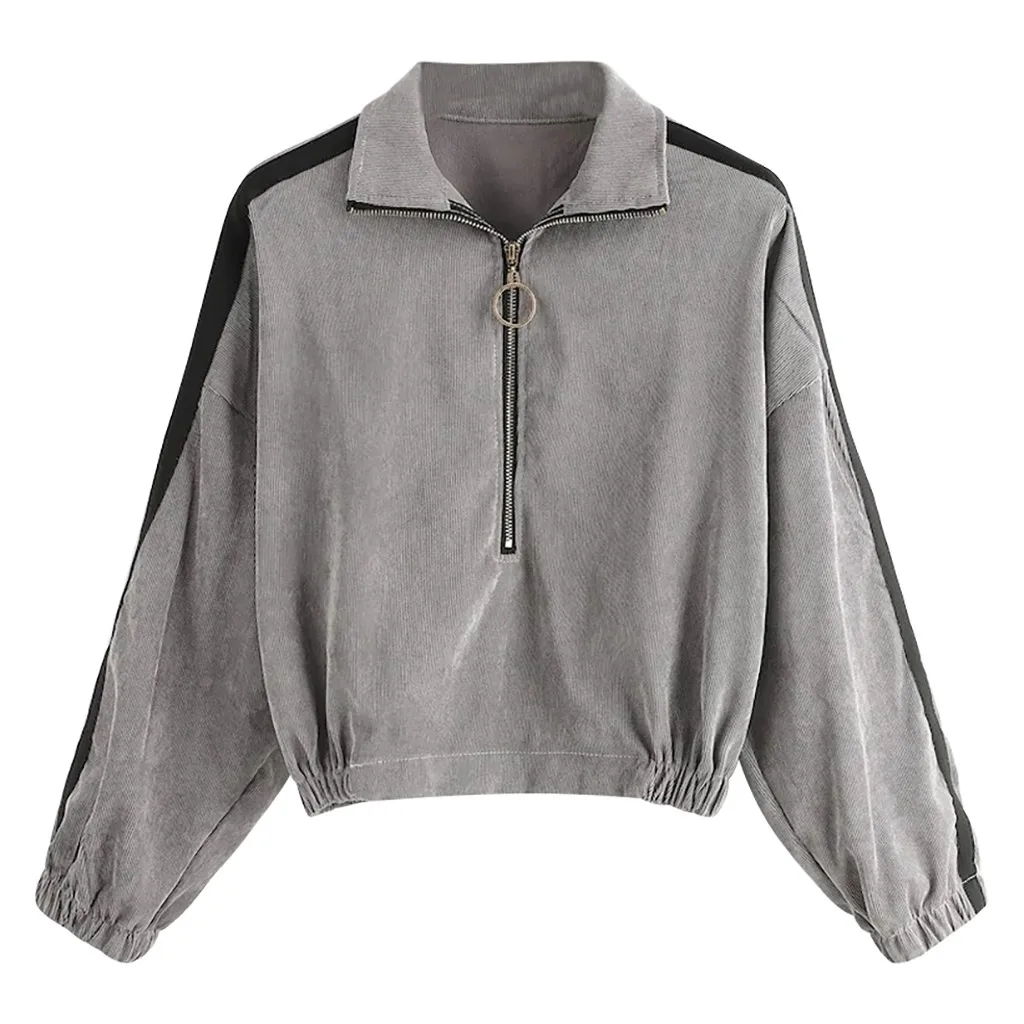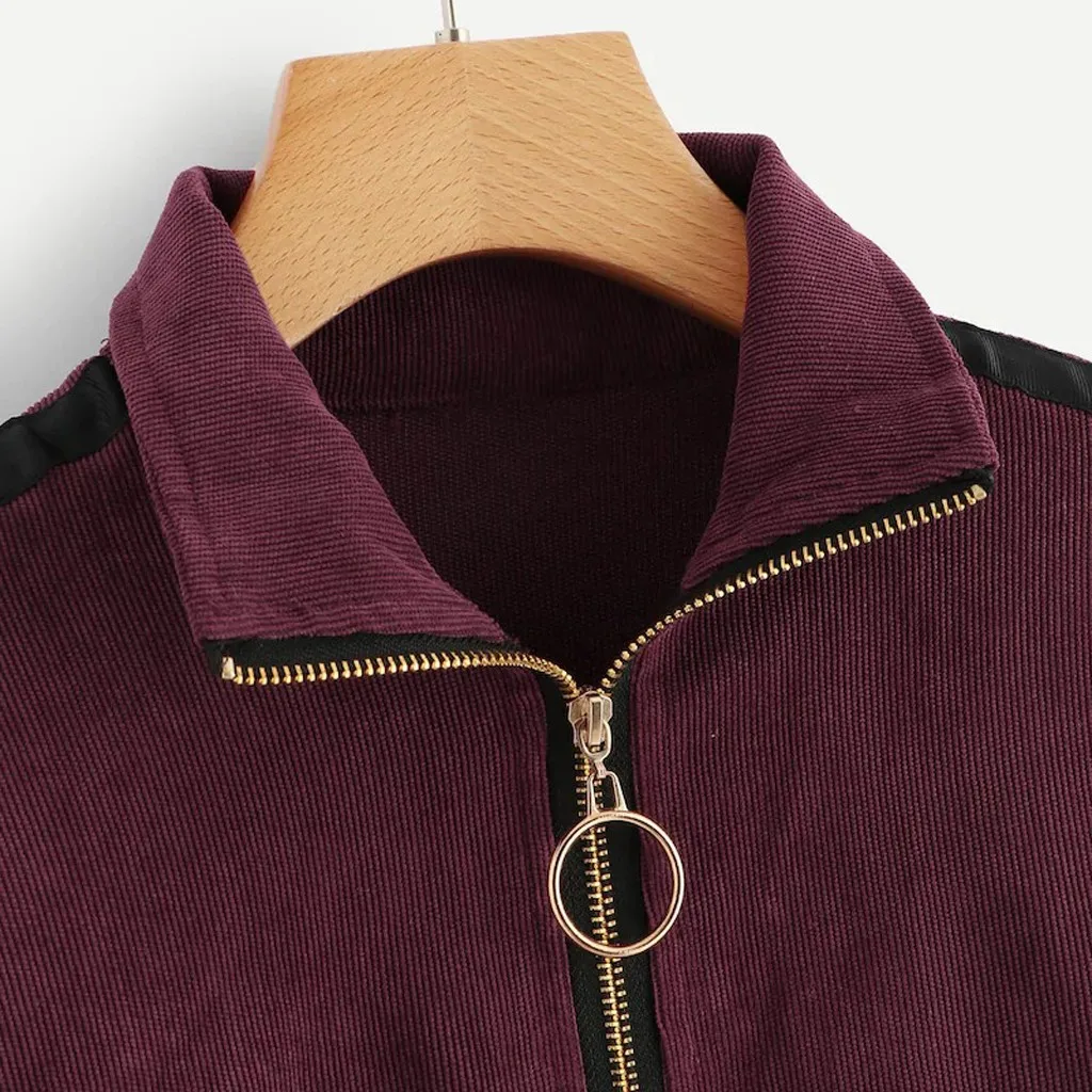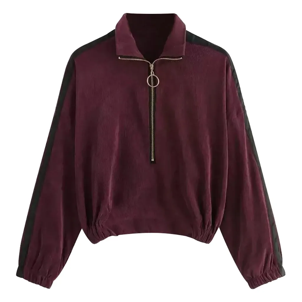 Вельветовая Толстовка 2020 тенденции моды для женщин пуловер Топы для детей, футболка с длинными рукавами, на молнии, контрастная лента боковой застежкой-молнией