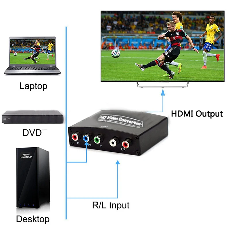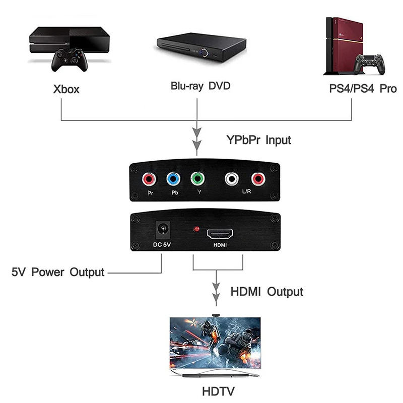 YPBPR к HDMI 1080 P к RGB Компонентный видео + R/L аудио адаптер конвертер сплиттер
