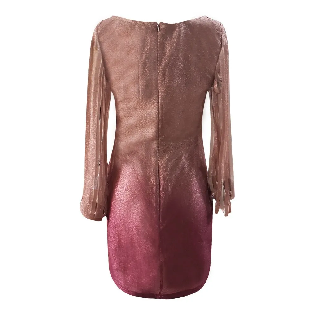 Модное женское сексуальное платье с блестками и круглым вырезом с длинным рукавом