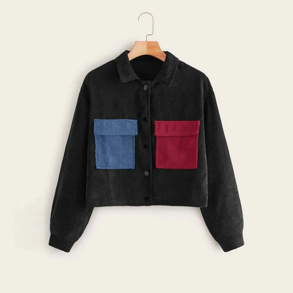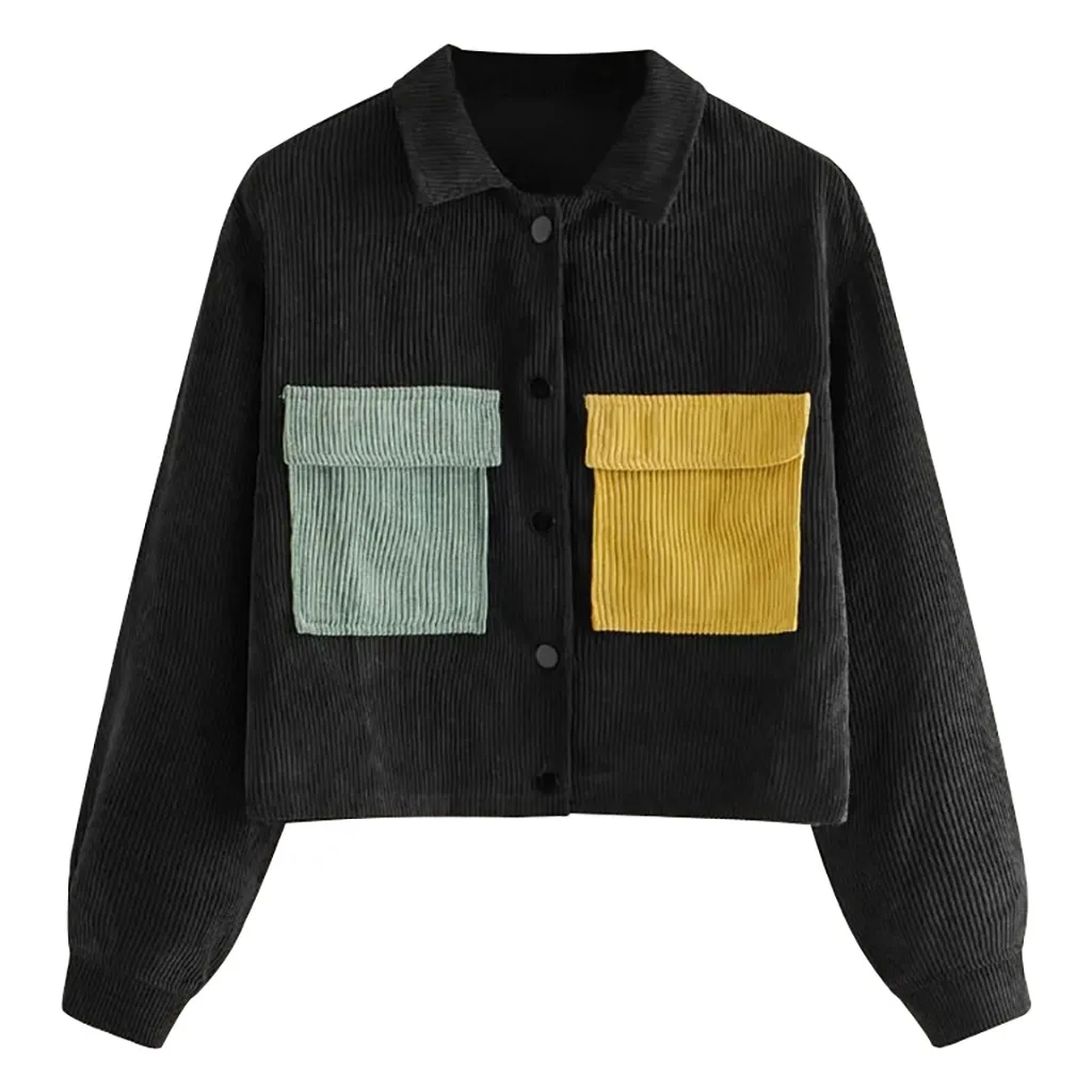 Новая весенняя Вельветовая куртка для женщин, модное контрастное пальто с длинными рукавами и карманами на пуговицах, Повседневная Верхняя одежда для девочек 2020
