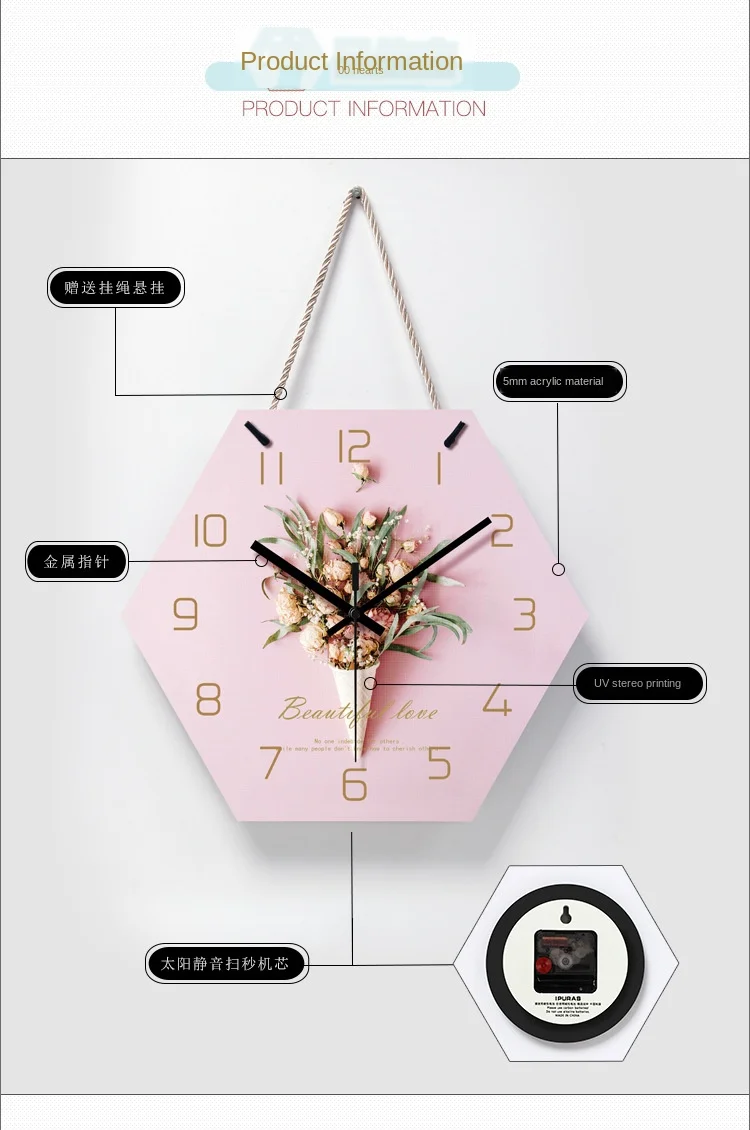 Креативные большие настенные часы Дерево Современный дом Ins скандинавский стиль Тихий розовый цветок настенные часы Horloge настенные часы механизм SC248