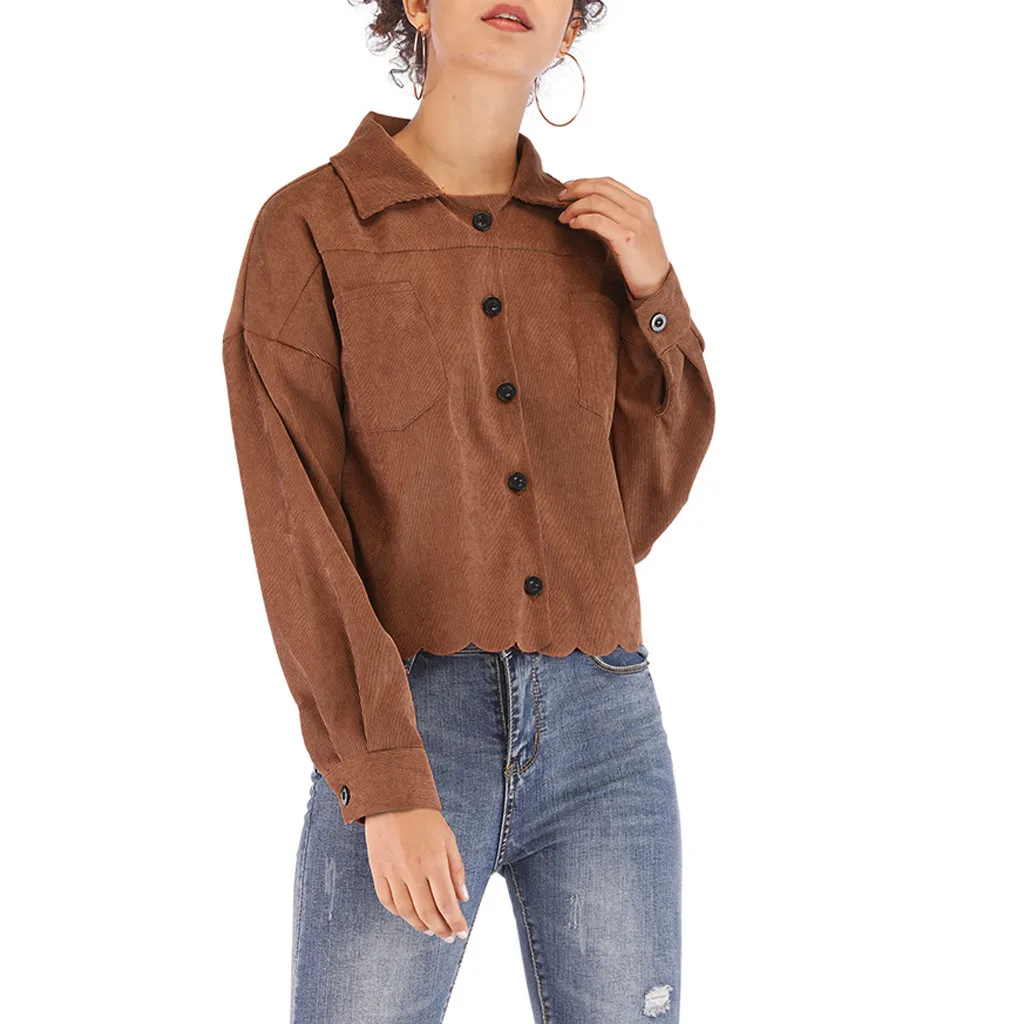 Женская уличная короткая Вельветовая куртка, женская тонкая Повседневная Верхняя одежда с длинным рукавом, простая элегантная женская куртка в стиле ретро, верхняя одежда