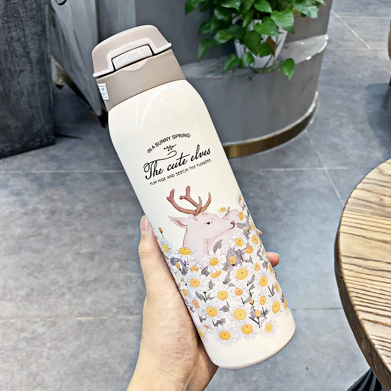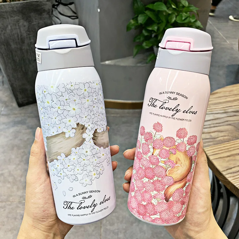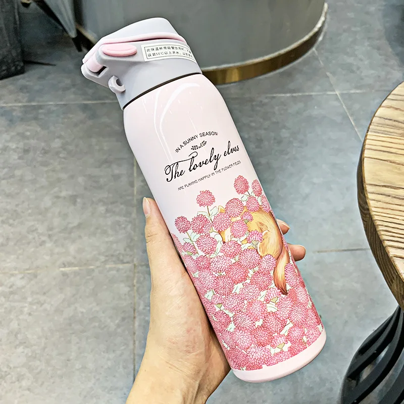 Название изделия: термос с цветочным принтом, морская печать