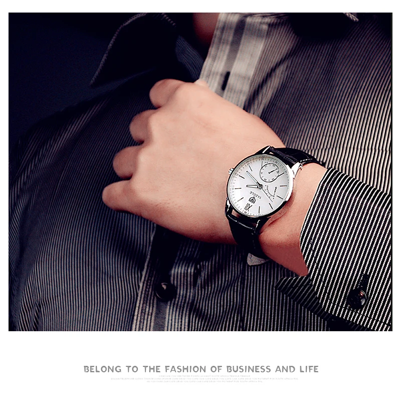 Мужские часы YAZOLE, черные наручные часы с кожаным ремешком, Спортивные Повседневные часы, relogio masculino, 2019