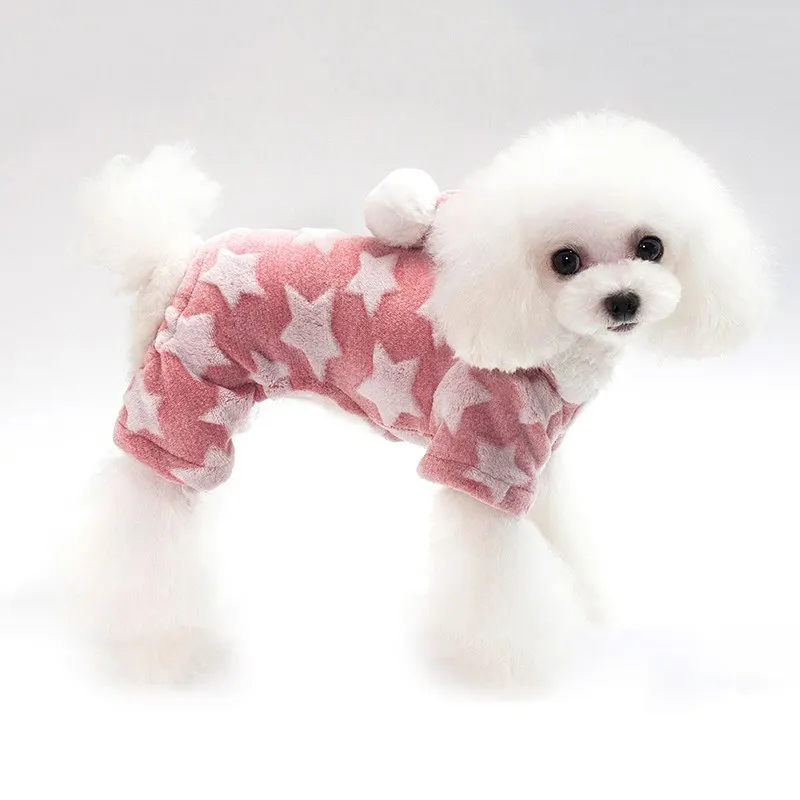 Dozzlor/милое зимнее толстое теплое пальто для питомцев, одежда для маленьких собак с принтом звезд, флисовая куртка с капюшоном и четырьмя штанинами, новый год чихуахуа