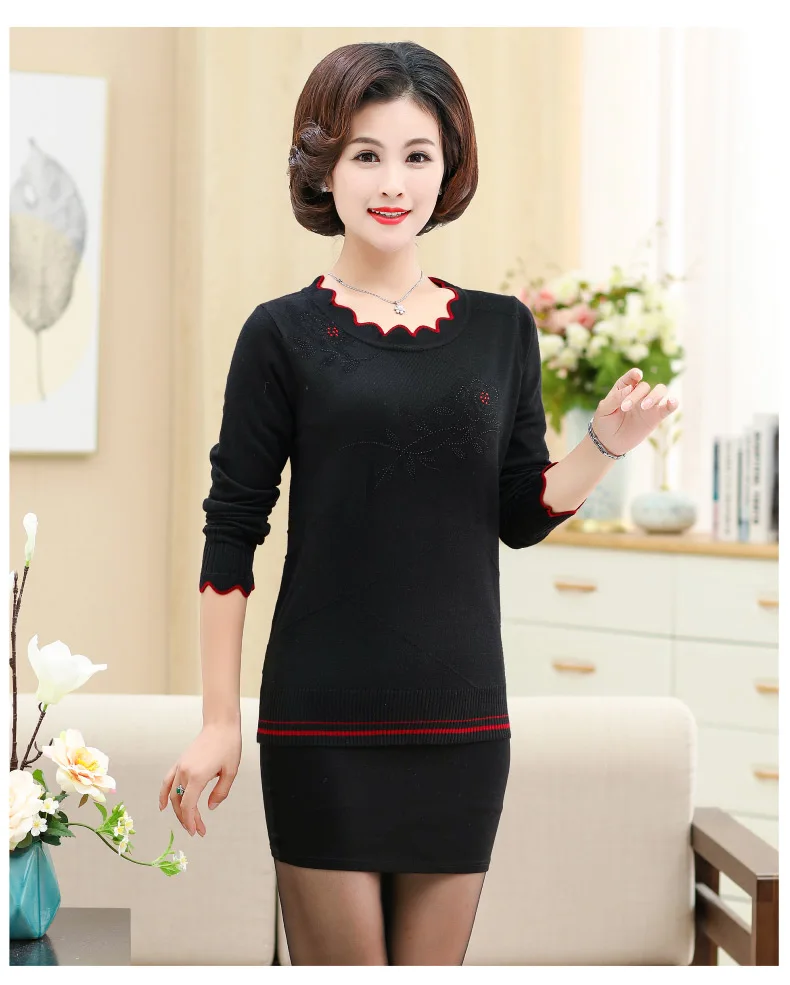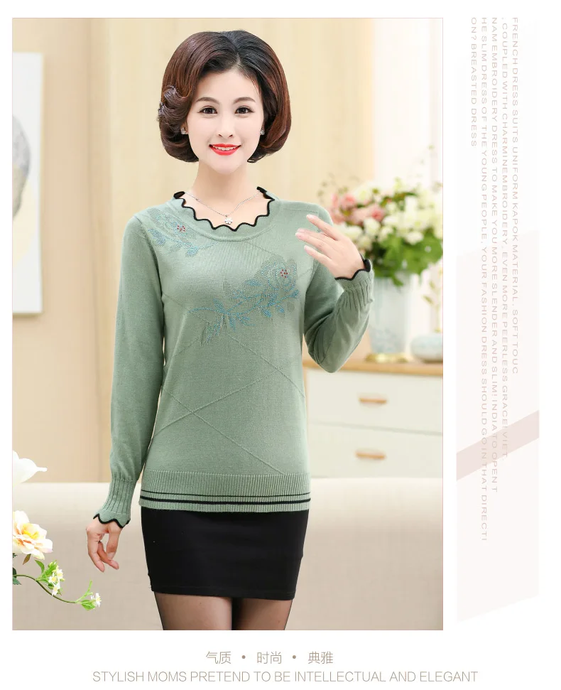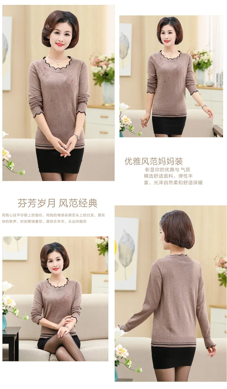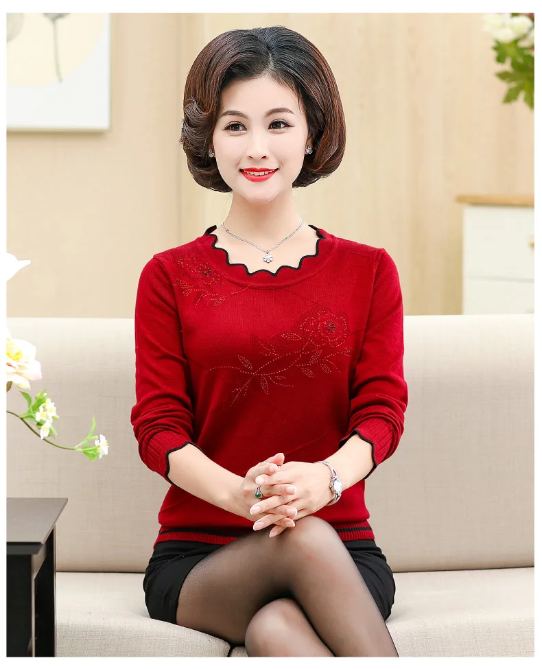 Women'S Pullover Sweater Long-Sleeved Printed Sweater Women Plus Size Autumn And Winter 40-50 Years Old Mother Knitted Top DA375