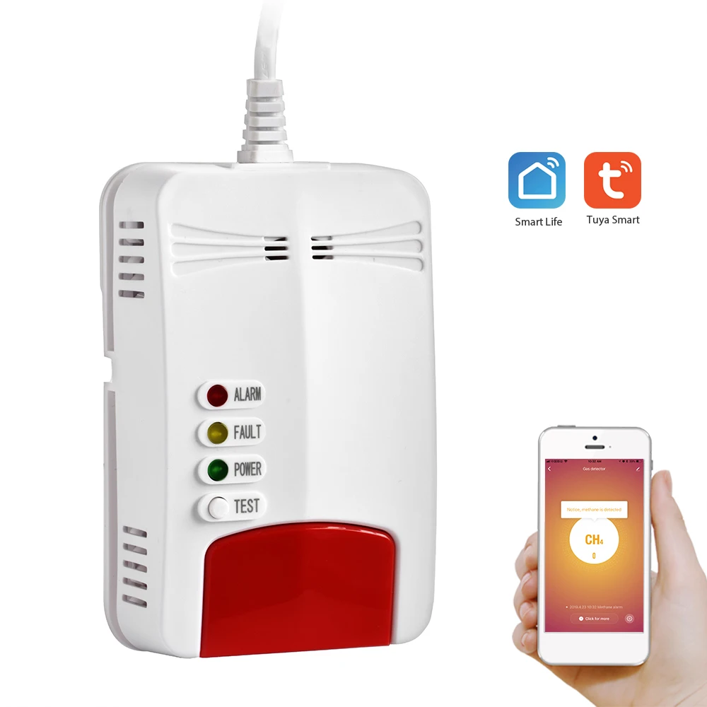 Датчик утечки газа Tuya с Wi-Fi и датчиком пожарной безопасности