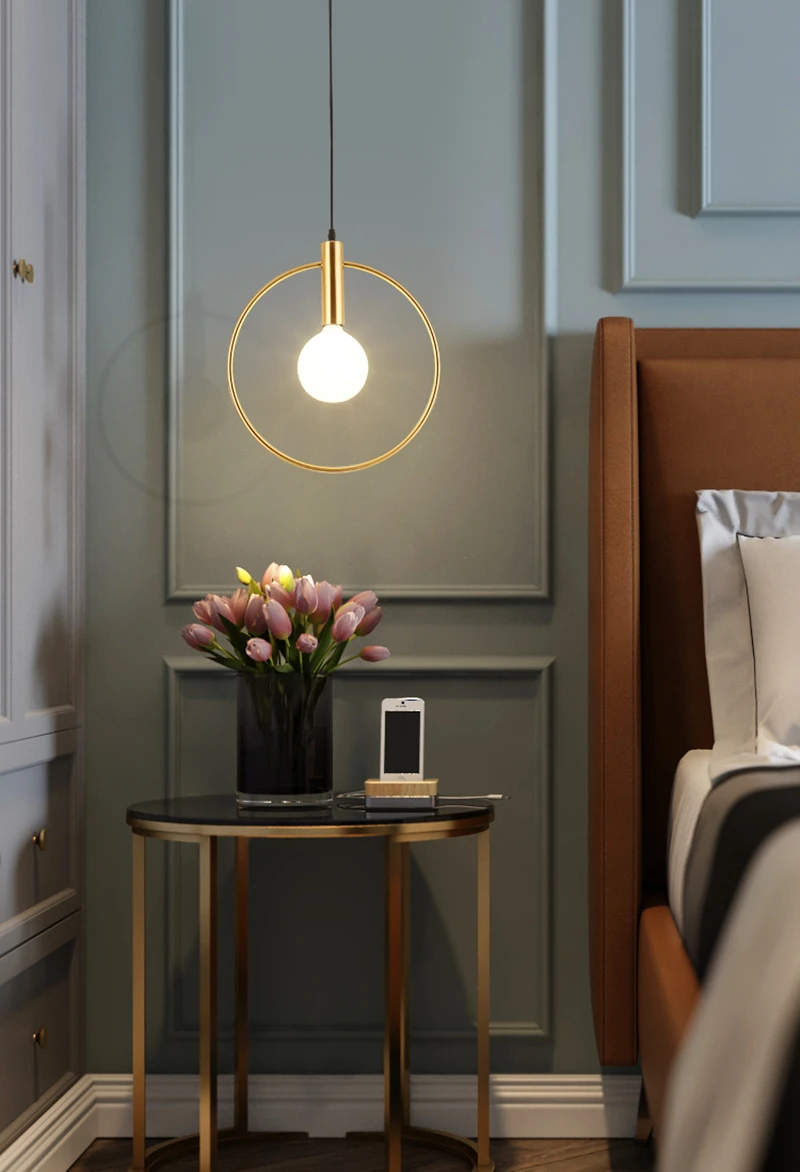 Современные золотые кольца подвесной светильник Настенный прикроватный круг простые подвесные светильники кухня столовая спальня декоративное освещение