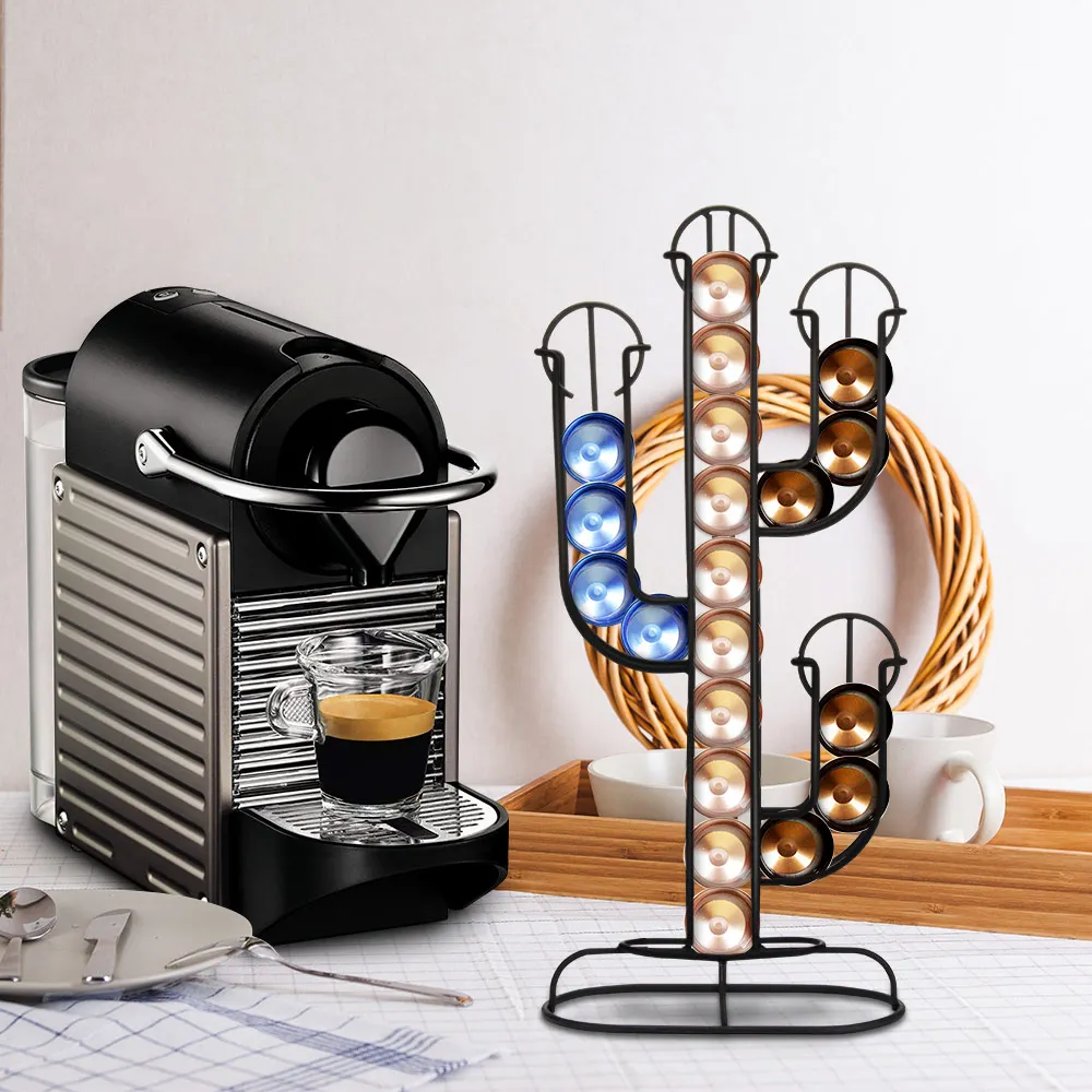 Кофейная Капсульная стойка с четырьмя отсеками кактуса, которые могут держать 40 кофейных капсул. Большой емкости может хватить больше людей или долгое время на кофе, что делает его легким для доступа к вашей кофейной капсуле.