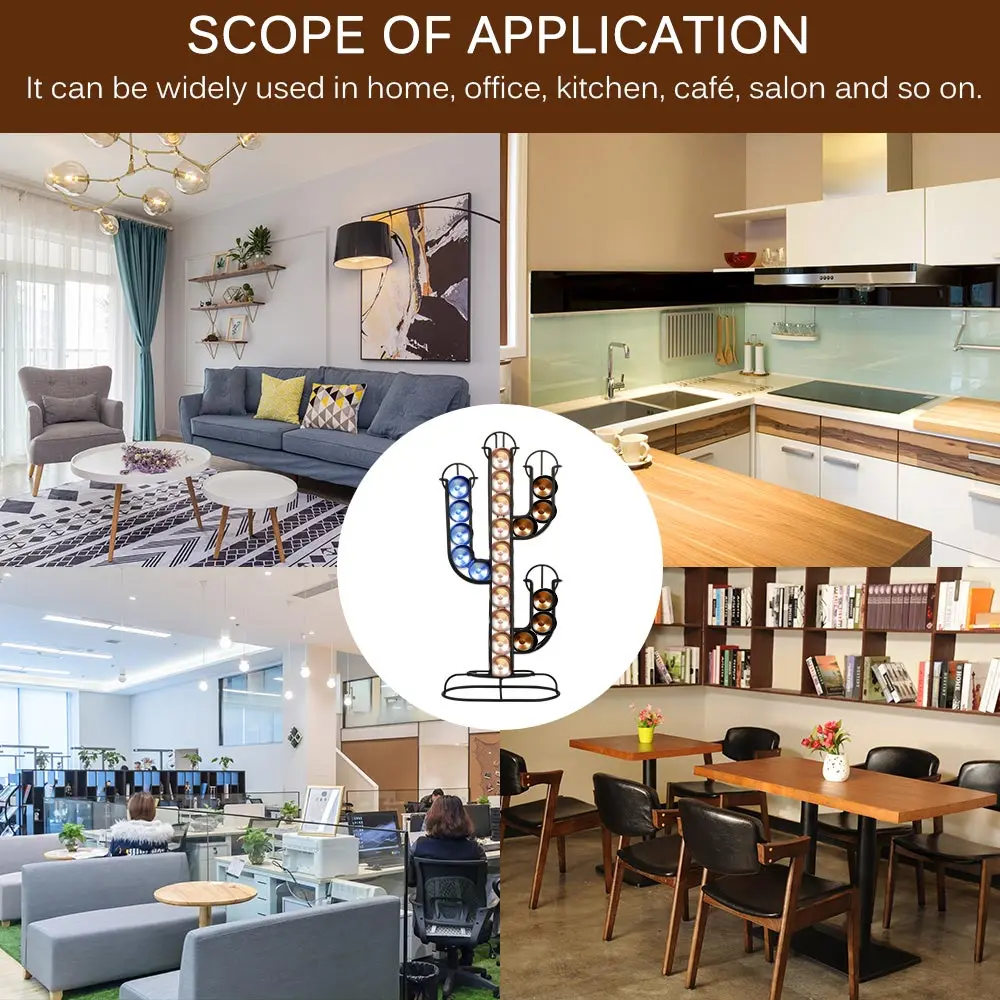 Кронштейн кофейной капсулы с классическим черным цветом и простой формой можно разместить на столе в качестве модного украшения. Особенные его мелкие детали, такие как дизайн формы кактуса, могут показать его элегантный стиль и очаровательный внешний вид.