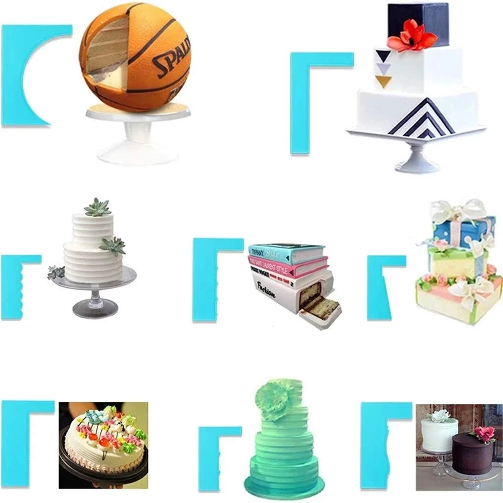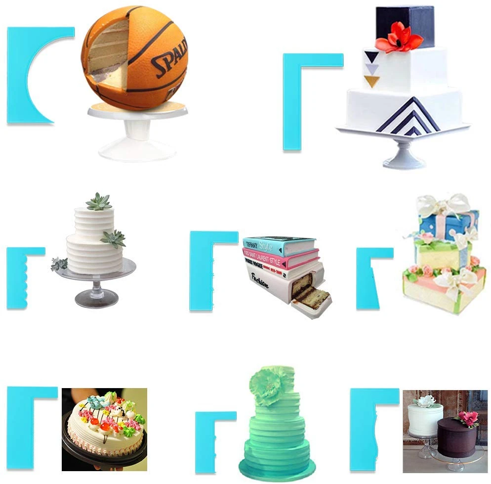 С помощью этих скребков вы можете легко сделать здание с драгоценными камнями, просто Замочите торт в креме, обведите его по вращающейся поверхности, а затем у вас есть форма pefecte.