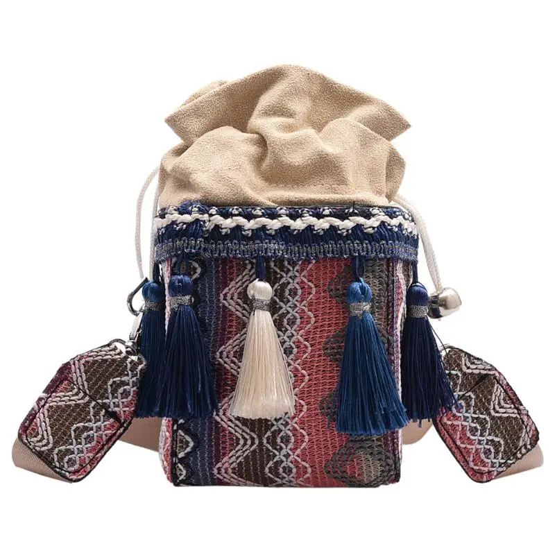 Модные женские сумки через плечо с завязками в этническом стиле с кисточками, маленькие сумки-мессенджеры