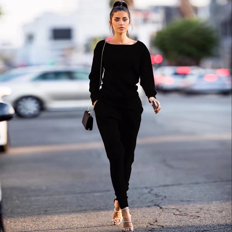 Женский спортивный костюм из 2 предметов, повседневный комплект с толстовкой и штанами, трикотажная одежда для отдыха, спортивный костюм!
