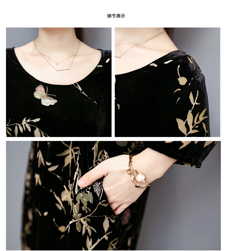 Осенне-зимнее женское платье большого размера Золотое велюровое платье женское винтажное платье с принтом свободные длинные платья vestido DA721