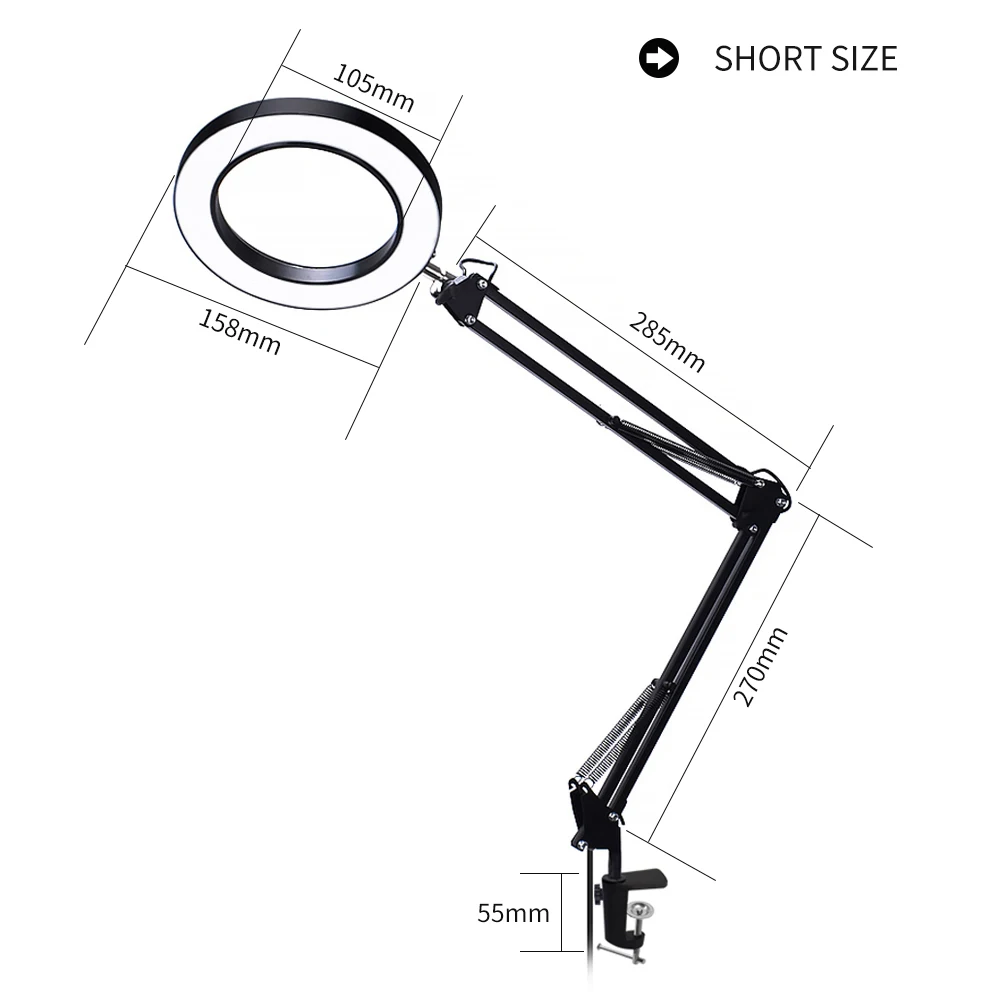 Зажим: большой c-зажим позволяет прикрепить лупу лампы к любому столу, столу, скамейке, рабочему столу или столешнице толщиной до 2 дюймов (55 мм), который не только освободит ваши руки, но и сохранит пространство для рабочего стола.