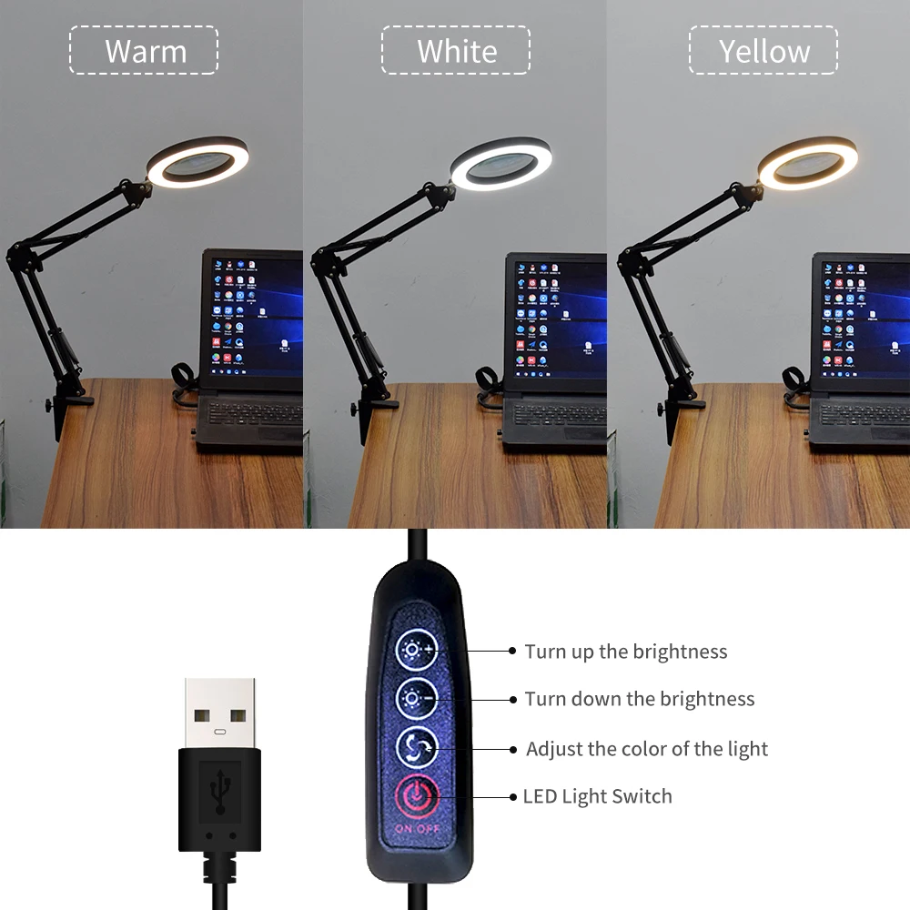 Настольная Светодиодная лампа лупа и 2-в-1: Лупа со светодиодной подсветкой, который обеспечивает достаточно света в ночное время для вас не выворачивают зонт на потолочные светильники.