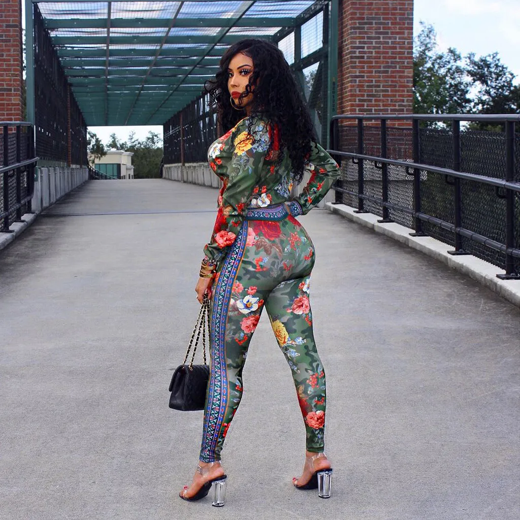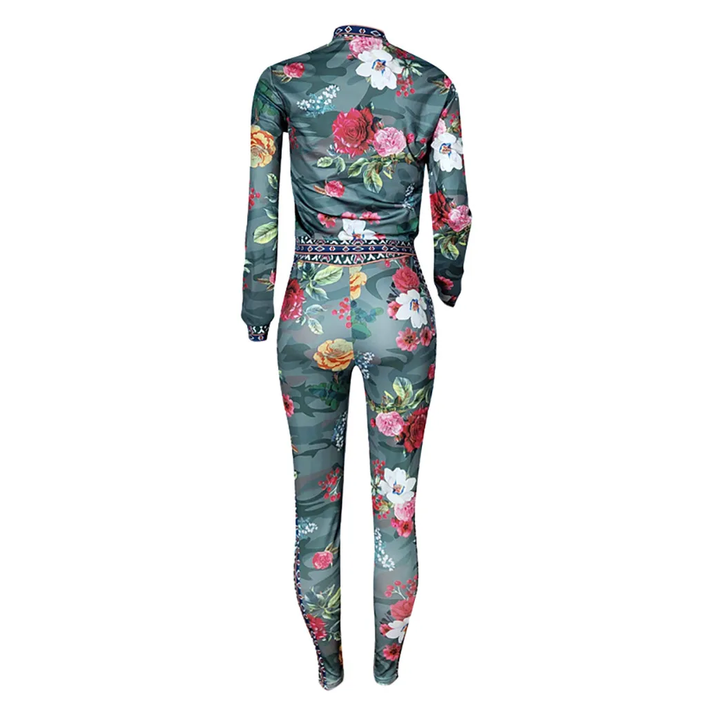 Сексуальные женские топы с длинными рукавами и брюки с цифровой печатью, повседневный спортивный комплект на молнии