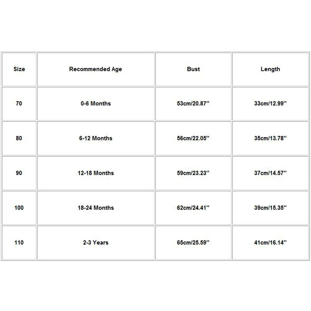 Размер Рекомендуемый возраст Обхват груди Длина 70 Для детей от 0 до 6 месяцев 53 см/20,87'' 33 см/12,99'' 80 6-12 месяцев 56 см/22,05'' 35 см/13,78'' 90 12-18 месяцев 59 см/23,23'' 37 см/14,57'' 100 18-24 месяцев 62 см/24,41'' 39 см/15,35'' 110 От 2 до 3 лет 65 см/25,59'' 41 см/16,14''