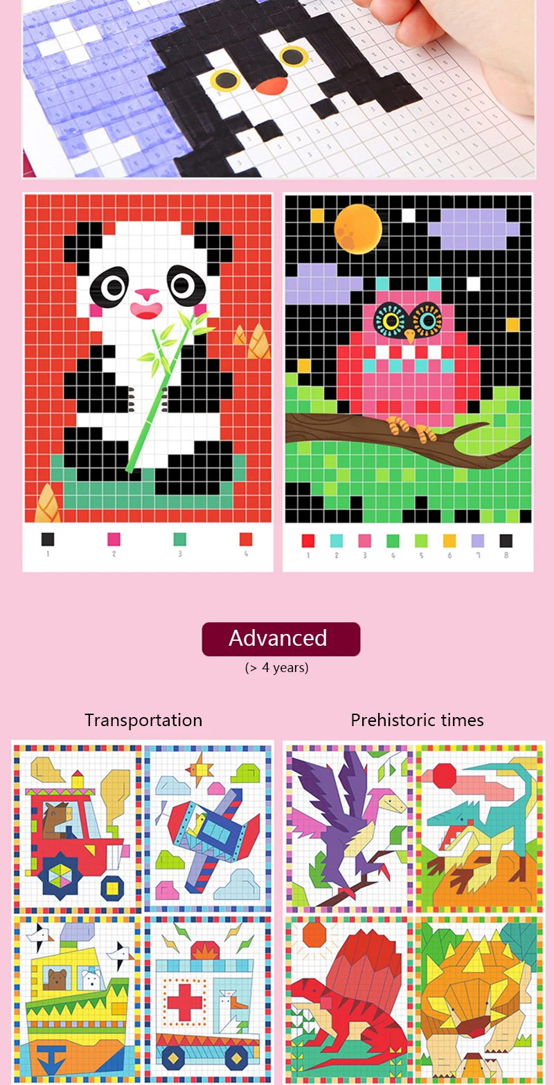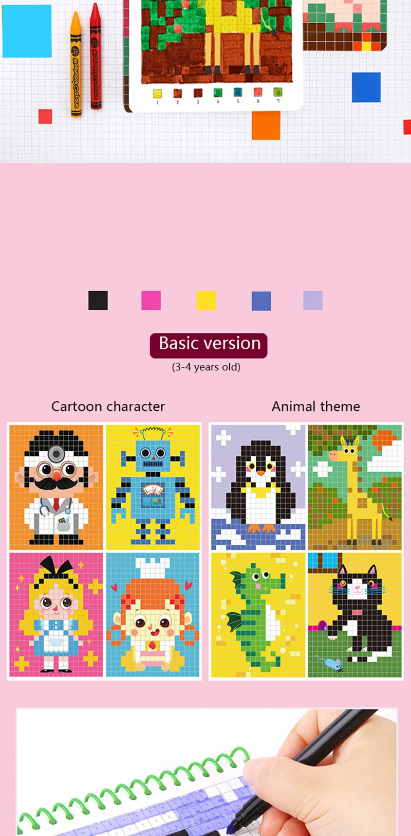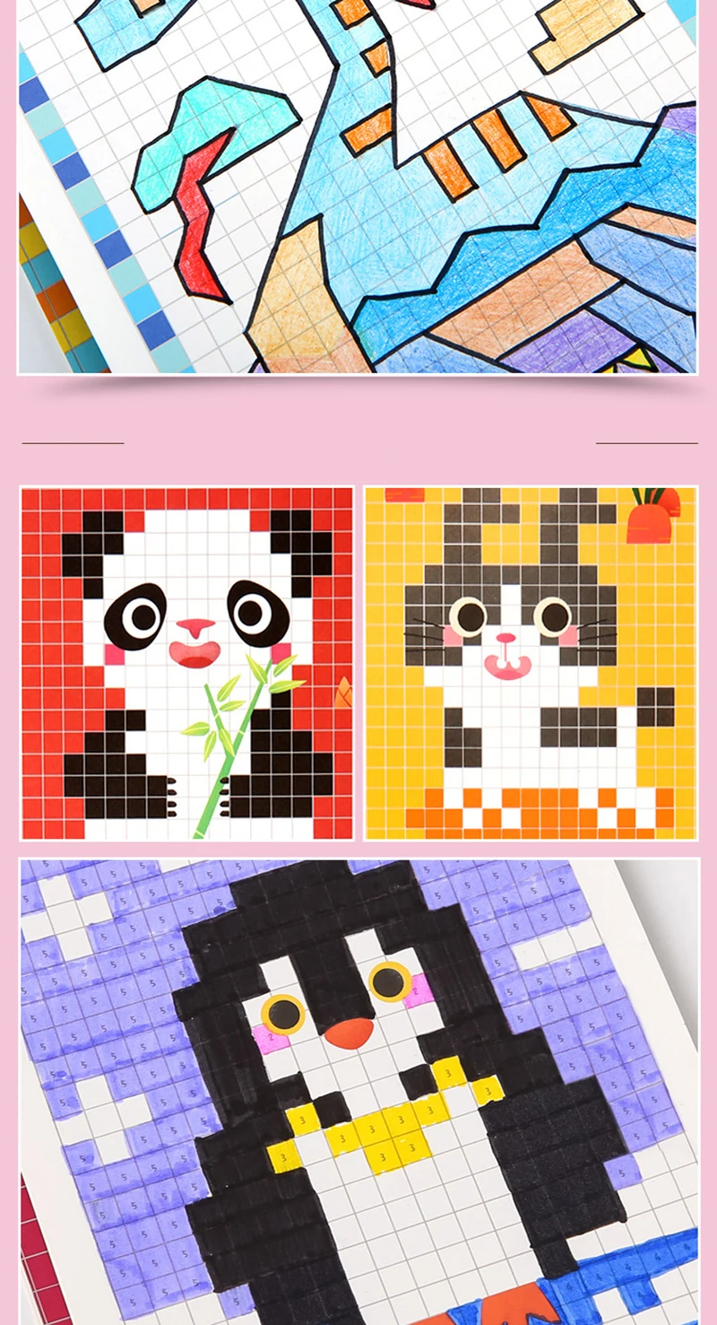 Новая раскраска, 15 страниц, доска для рисования пикселей, книга для раннего развития детей, развивающая игрушка для рисования граффити.