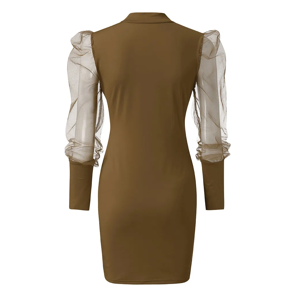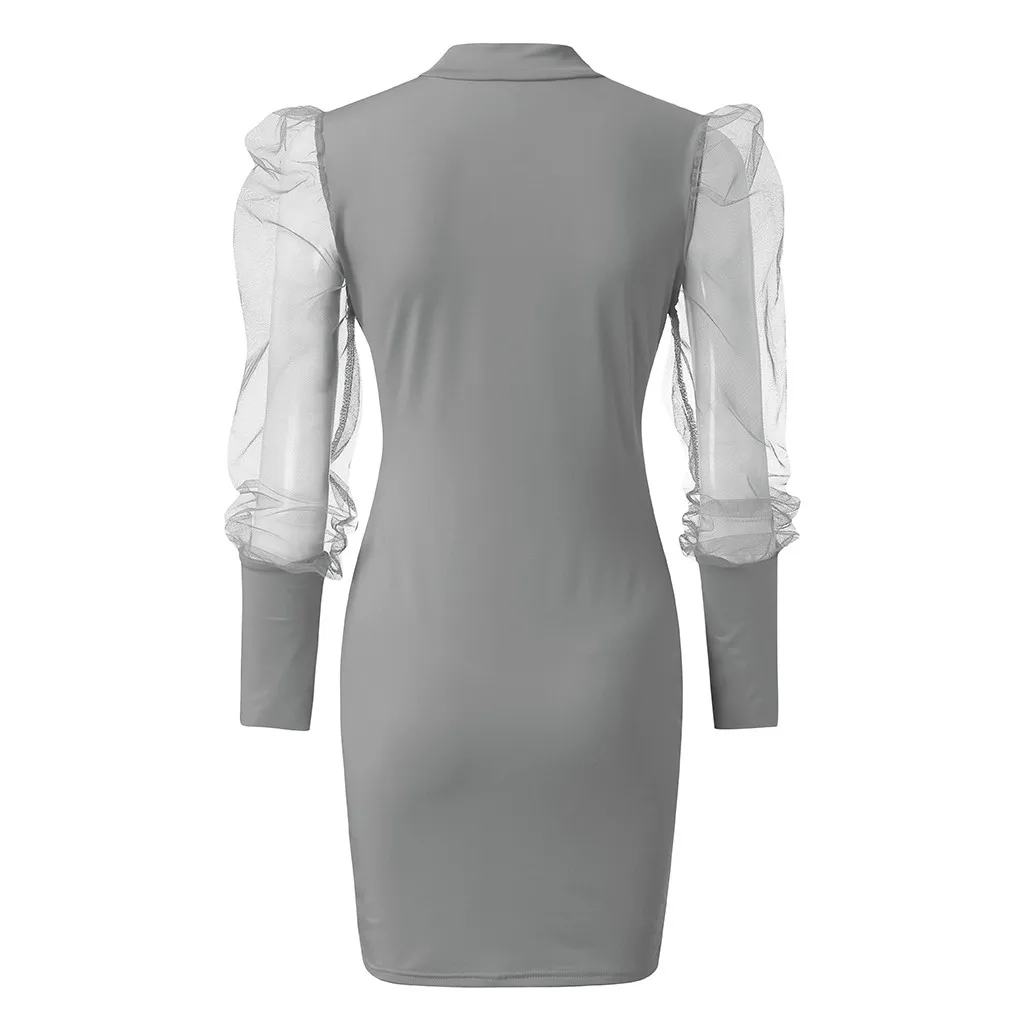 Модное женское повседневное мини-платье с круглым вырезом и рукавами-фонариками