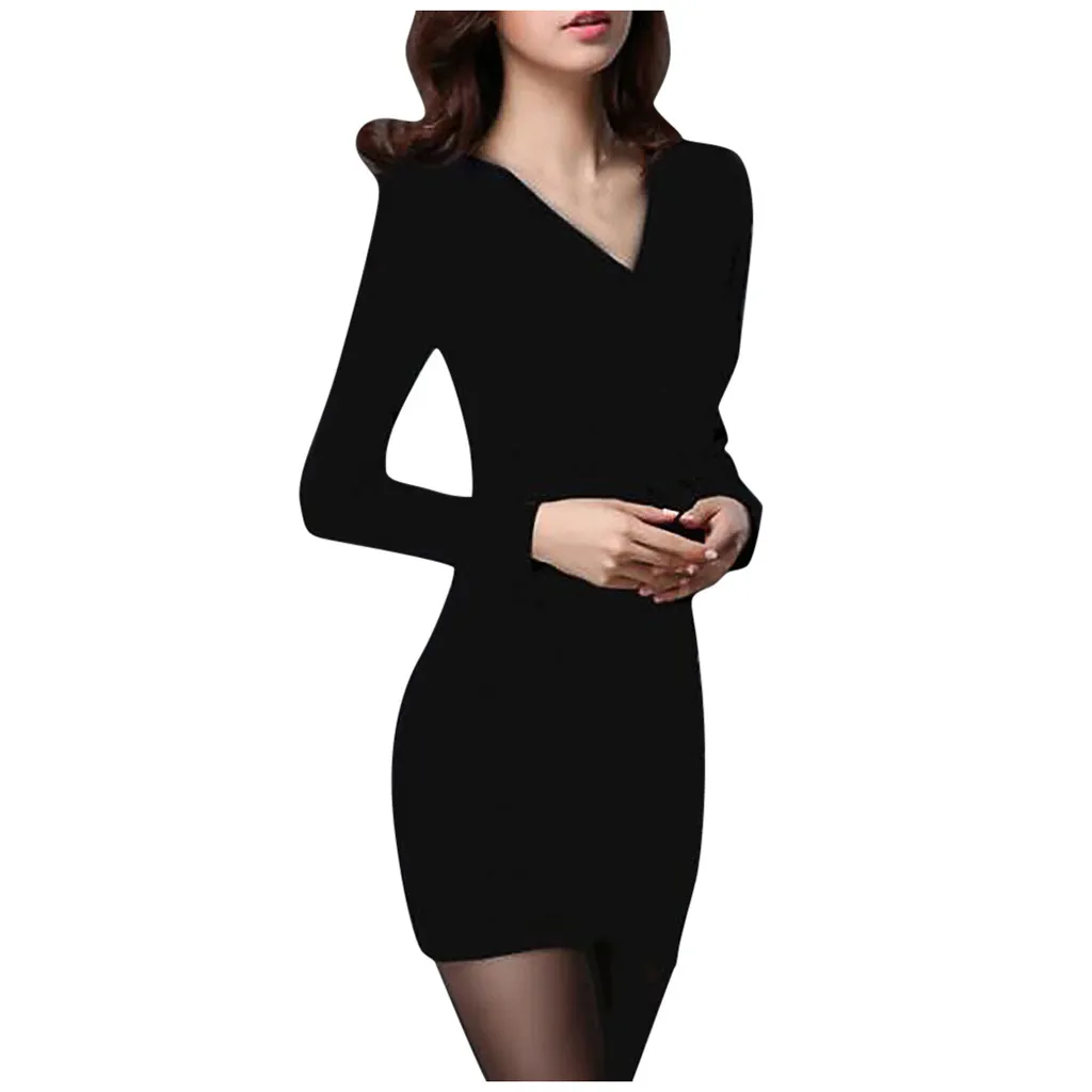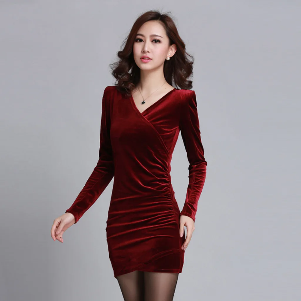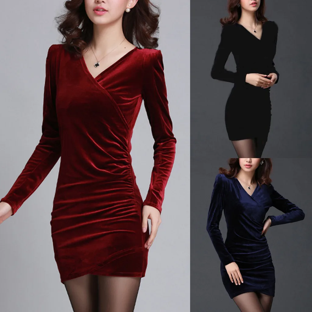 Модное женское однотонное бархатное сексуальное облегающее платье с v-образным вырезом и длинным рукавом посылка