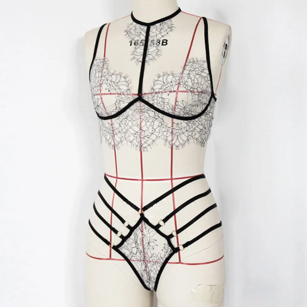 Сексуальный кружевной комплект нижнего белья с вышивкой, женский бюстгальтер с лямкой на шее, комплект с трусиками, сексуальное нижнее белье, ночное белье, сексуальные костюмы, комбинация большого размера 3XL