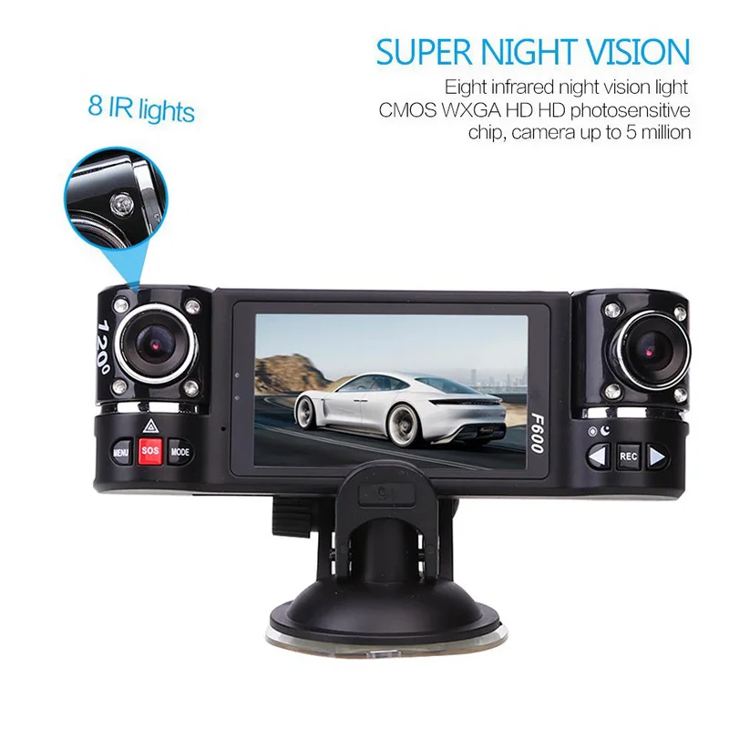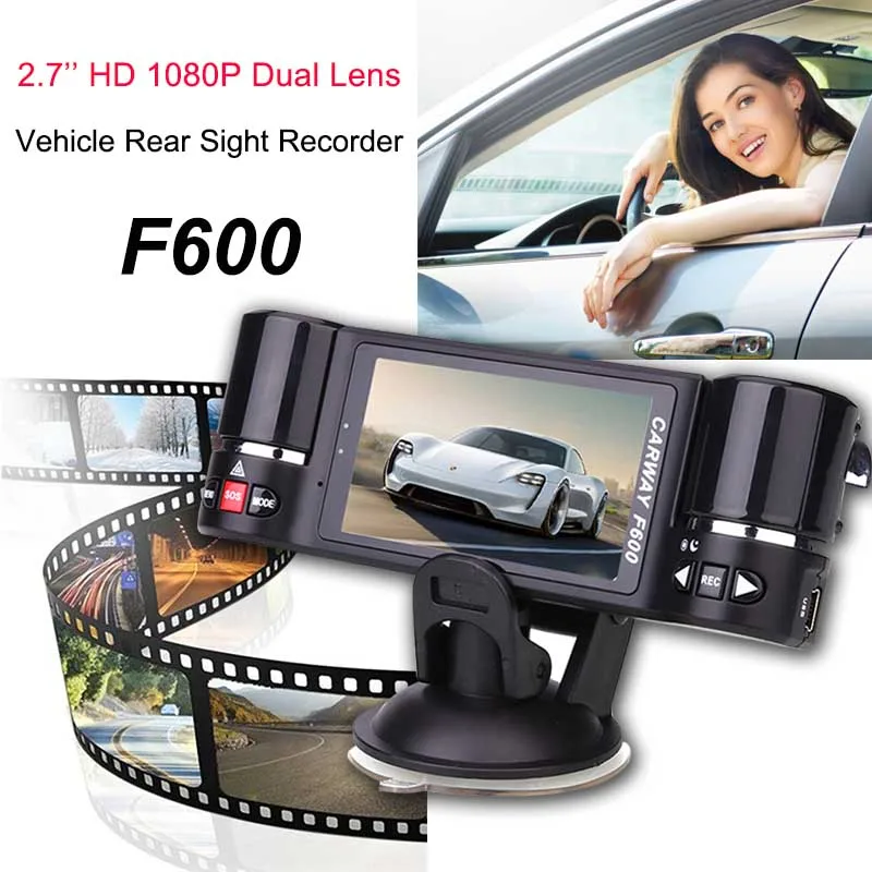 Full HD 1080P 2,7 ''двойной объектив Автомобильный видеорегистратор двойная VGA камера F600 видеорегистратор с g-сенсором ночного видения SOS Автомобильный видеорегистратор s