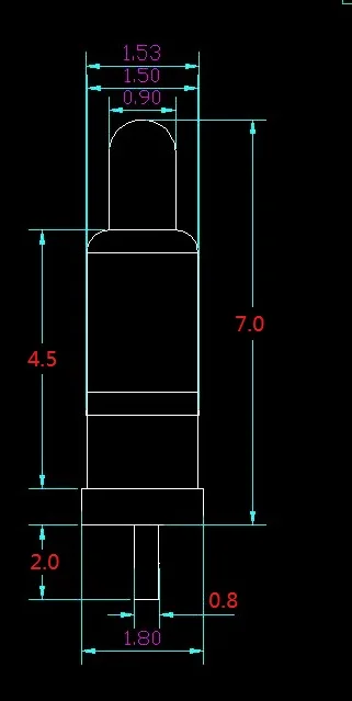 Пружинный штырь Pogo 7,0 мм высота фланца 1,8 мм Диаметр хвоста 2,0 мм сквозное отверстие PCB одиночный пружинный штыревой штырь мужской контакт