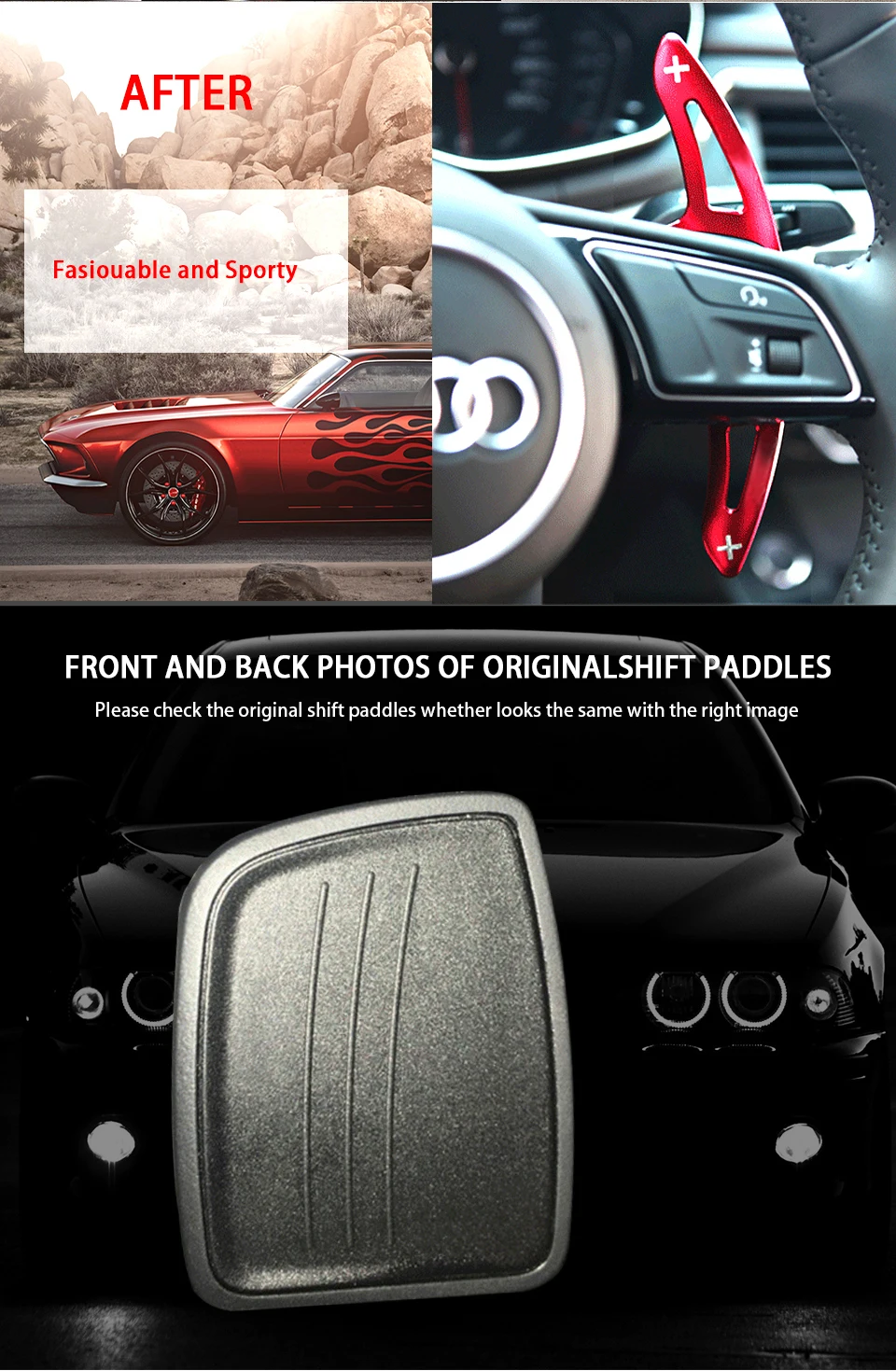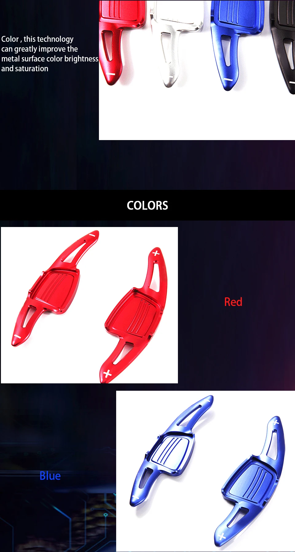 Это список для 2 частей из алюминиевого сплава, расширитель рычага переключения передач DSG. Уникальный спортивный стиль Цельнокройное весло для ugrade стайлинга вашего автомобиля. Изготовлен из высококачественного алюминия, гладкая отделка, превосходное управление на ощупь. Это отличное расширенное модифицированное устройство для вашего любимого автомобиля.