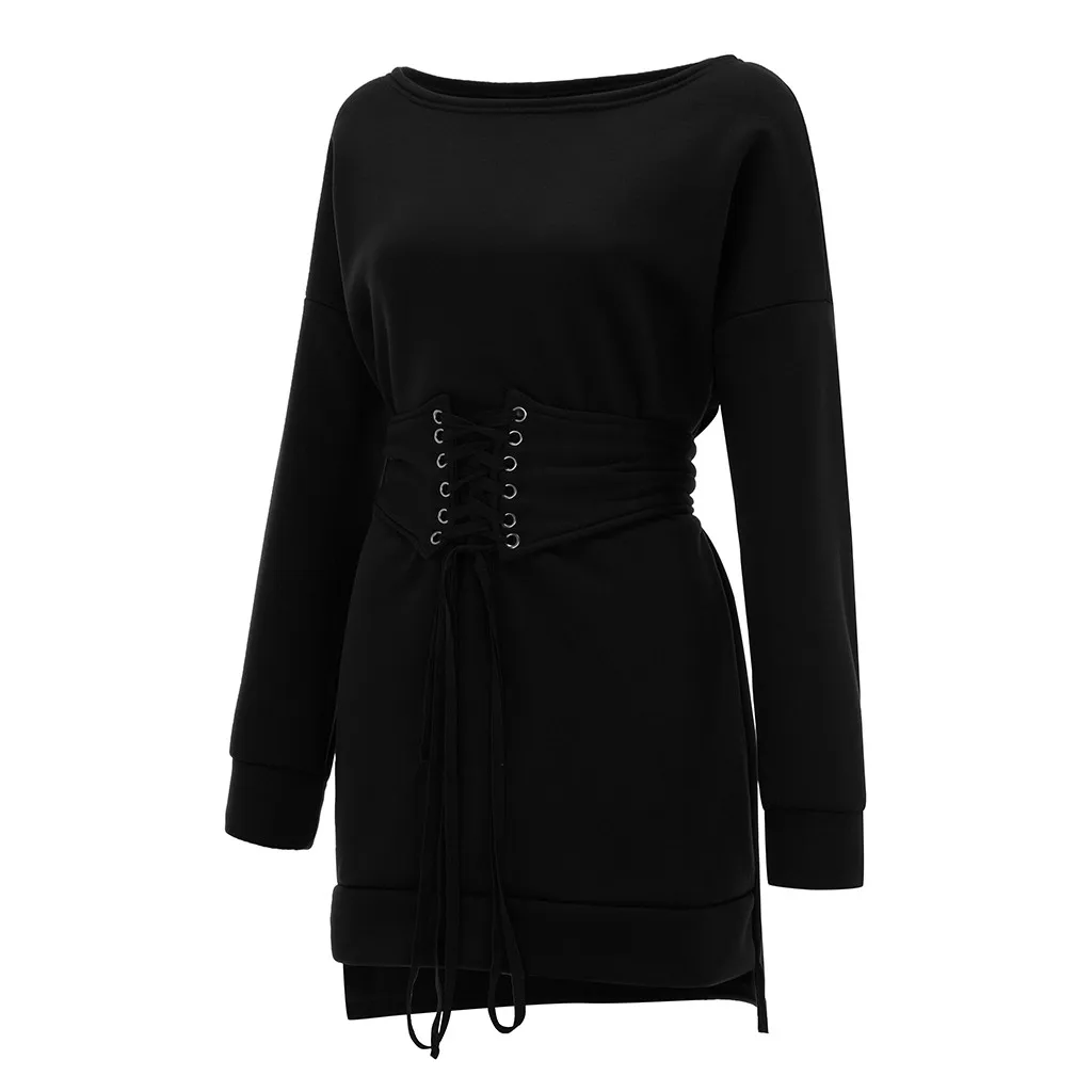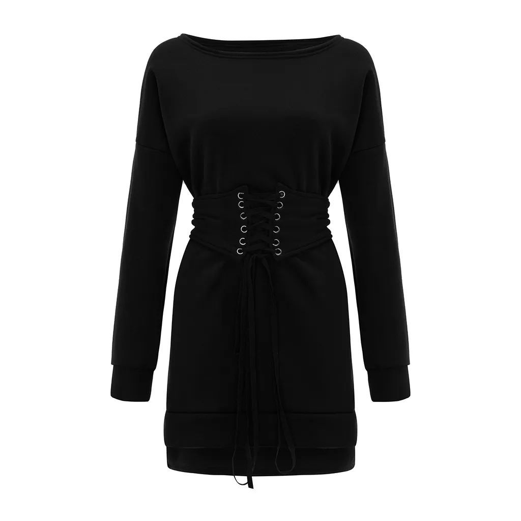 Женское плотное флисовое платье с круглым вырезом и длинными рукавами + пояс на поясе