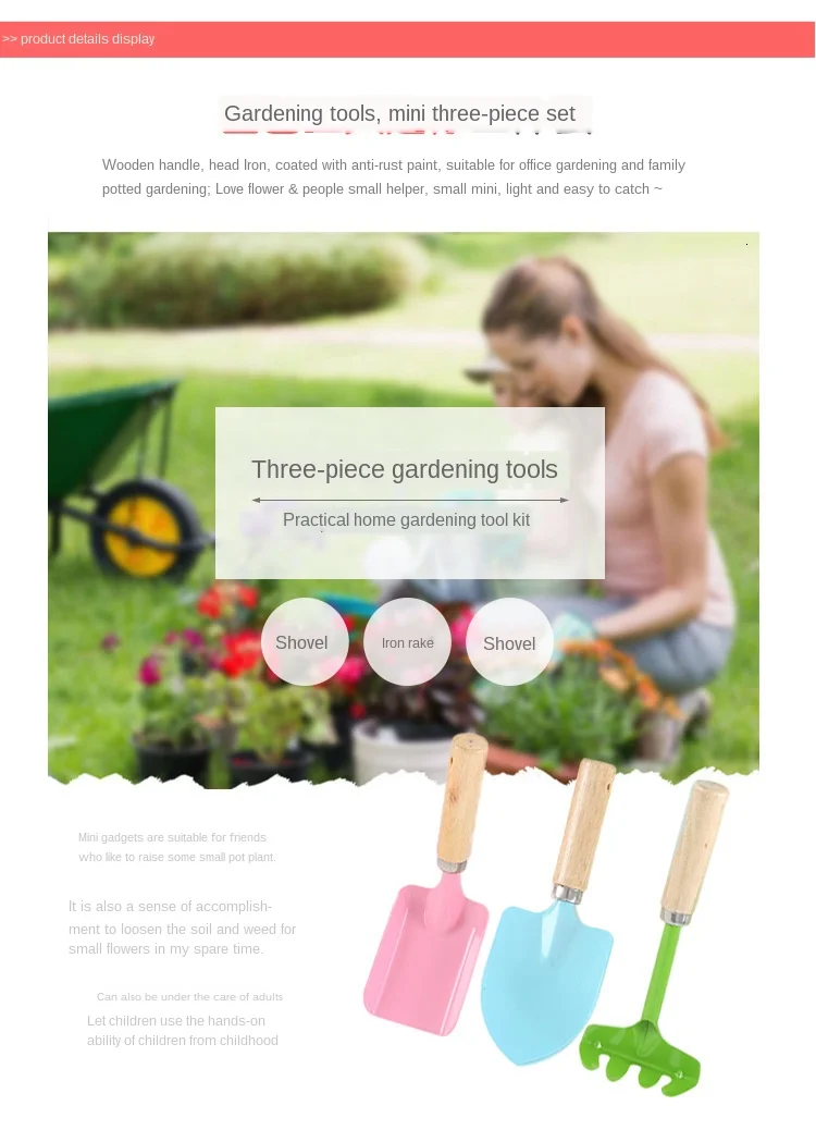 A796 домашний садовый инструмент мини деревянная ручка маленькая лопата грабли из трех частей костюм горшечная Лопата для ухода за цветами