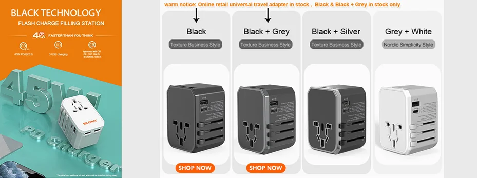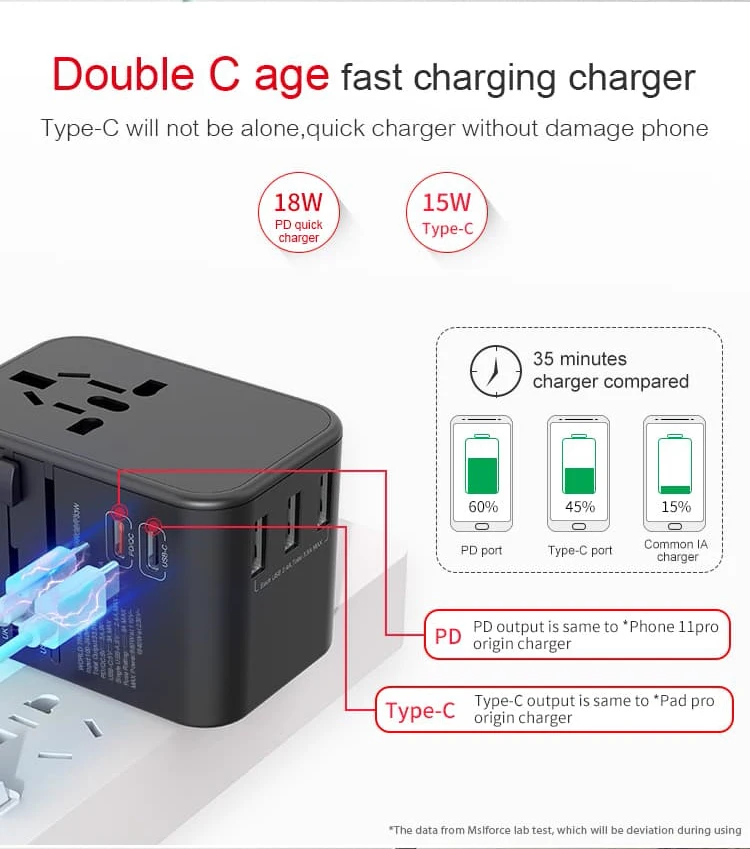 Лучший дорожный адаптер помогает заряжать ваши электронные устройства на ходу, независимо от того, совершаете ли вы короткую поездку по пруду или прыгаете в путешествие по всему миру. MSLFORCE TYPE-C выход PD 45 Вт Универсальный дорожный адаптер для зарядки вашего Macbook Pro 2019 , Macbook air 2019 , ipad pro 2019 , surface pro 7 и других связанных с ними USB-C PD ноутбук, ноутбук или ipad.