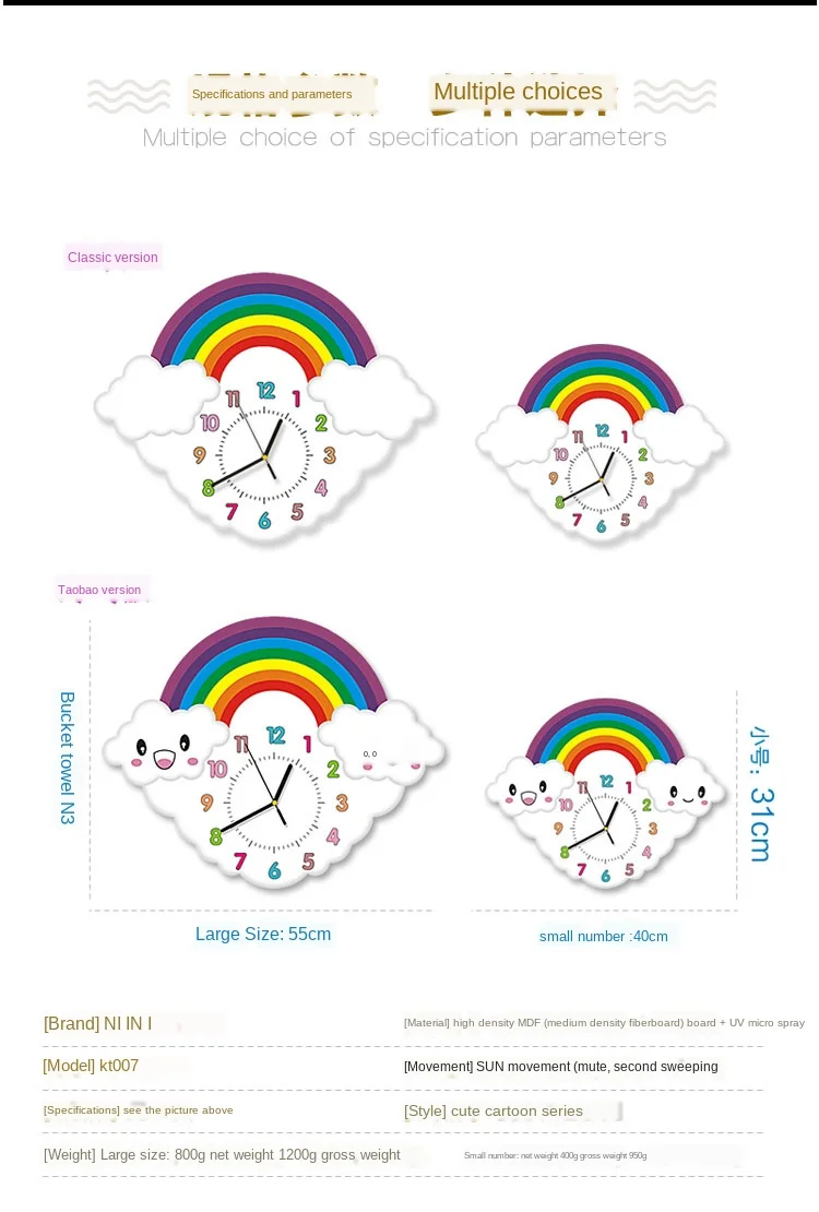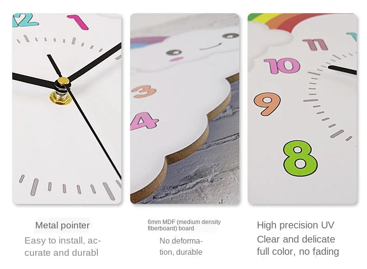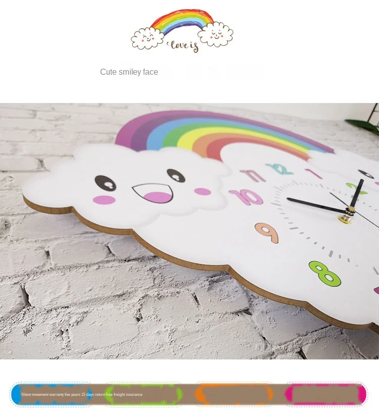 Детские большие настенные часы с мультипликационным принтом, радужные 3d часы для детского сада, для спальни, бесшумные часы для детской комнаты, акция, 2019, Reloj Decoration SC262