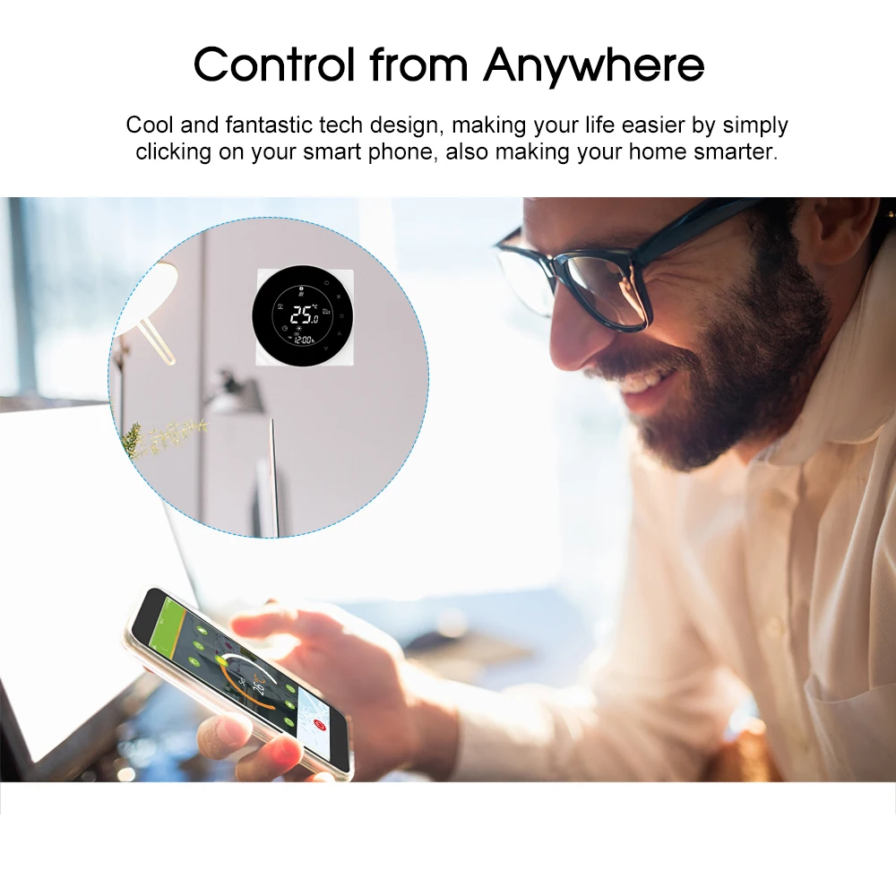 Предназначен для управления системой отопления, прост в эксплуатации и программировании. Вы можете управлять им через приложение телефона, когда вы не дома.