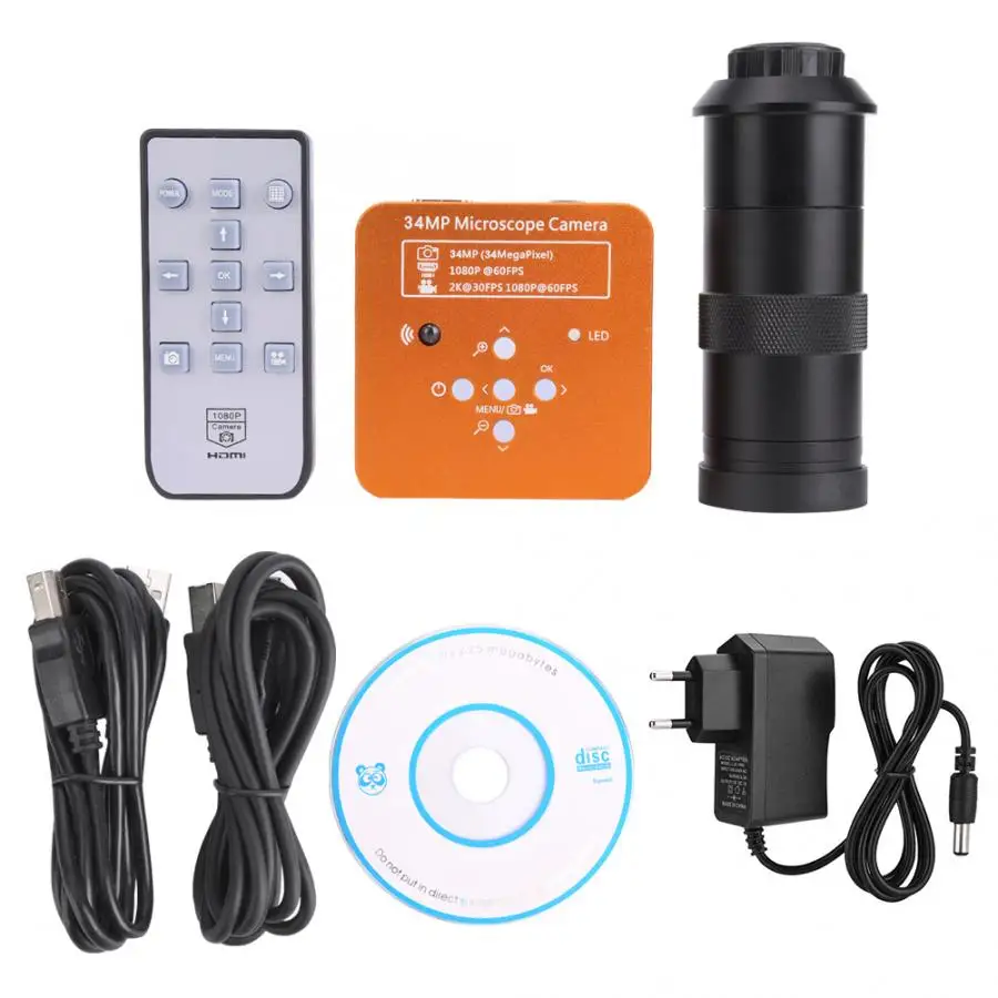 34MP HDMI USB выход промышленный микроскоп камера комплект с 100X объективом 100-240 В