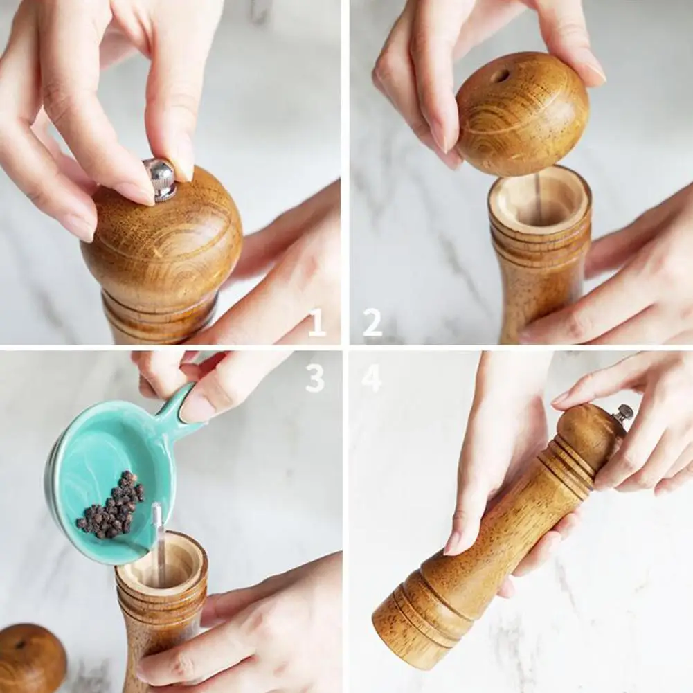 5 8 10 Inch Salt and Pepper Mill Solid Wood Spice Grain Grinder with Grinding Core Kitchen Tools