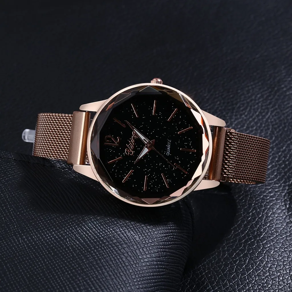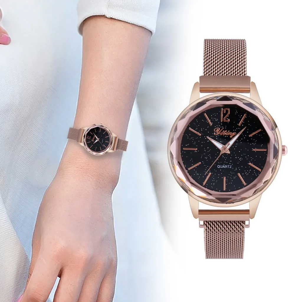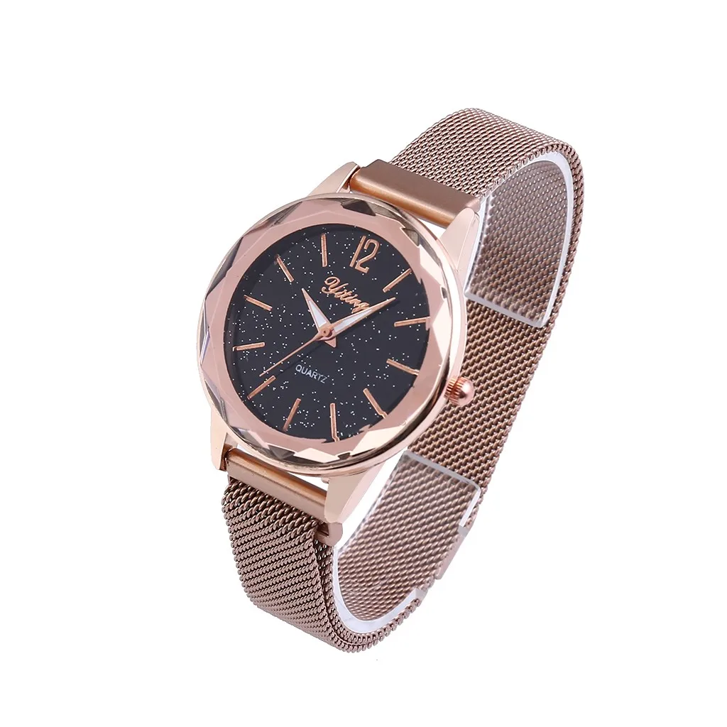 Топ Модные женские кварцевые часы креативная Мода магнитная пряжка сетка нержавеющая сталь Кварцевые женские наручные часы женски