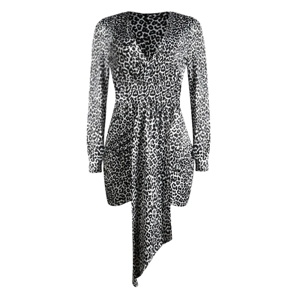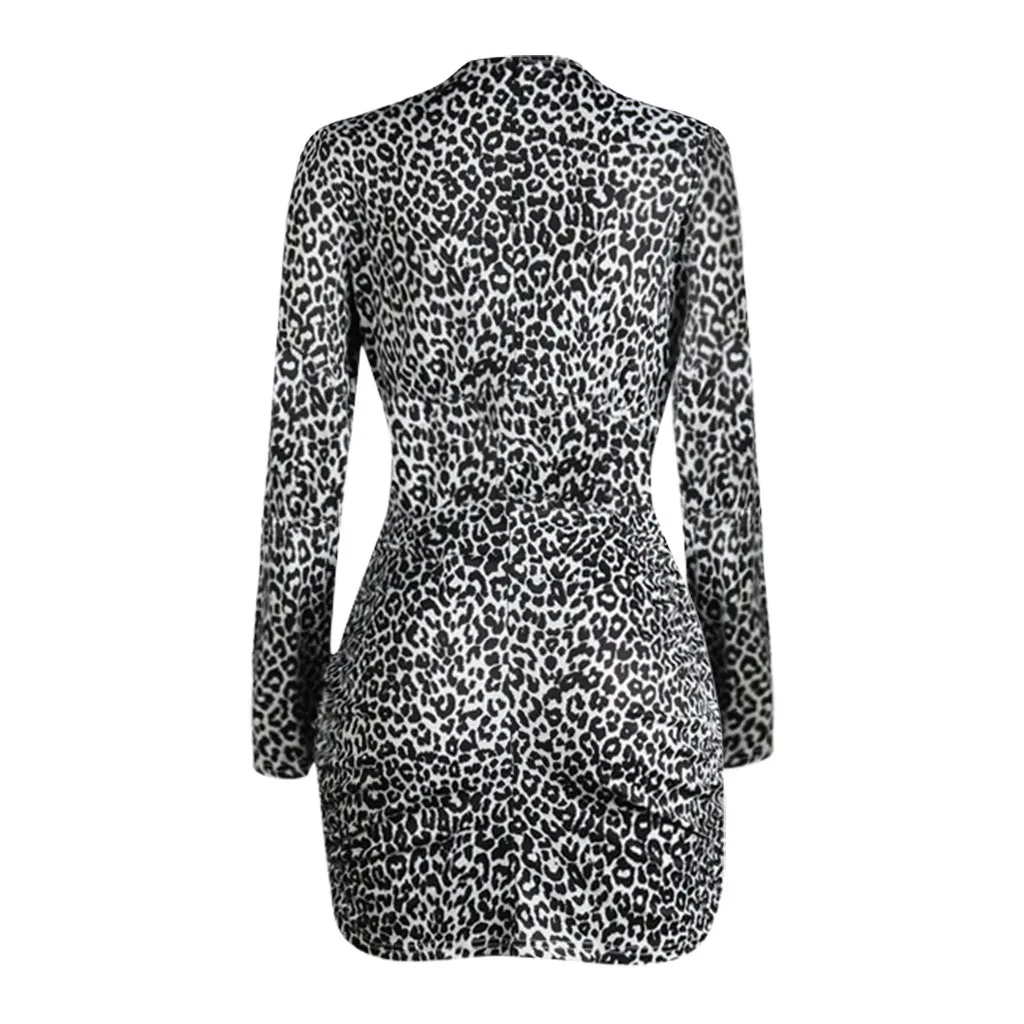 Женское сексуальное черное леопардовое платье-футляр с v-образным вырезом и длинными рукавами